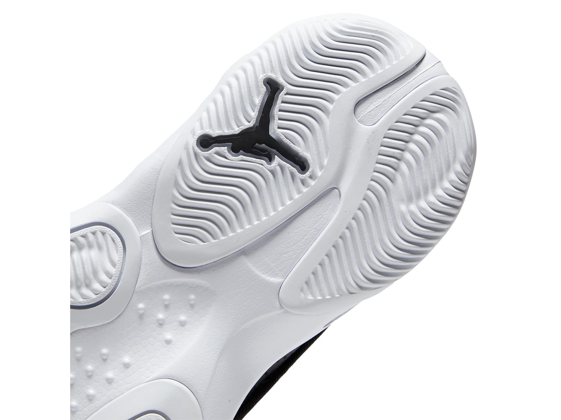 This next generation hoops-inspired shoe takes cues from its predecessors. Classic details show up in the molded branding on the sole, embroidered graphics on the tongue, and visible Air in the heel. Bold rubber tread and cloud-like cushioning will keep you light on your feet. So what are you waiting for? Get out there and take flight. Genuine and synthetic leathers pair with tough polyester to create a pliant yet durable upper. Visible Max Air unit supplies lightweight impact cushioning and comfort beneath your heel. Futuristic waves of tread on the rubber outsole provides traction on multiple surfaces. Rubber outsole. Not intended for use as Personal Protective Equipment (PPE). Textile lining and insole.