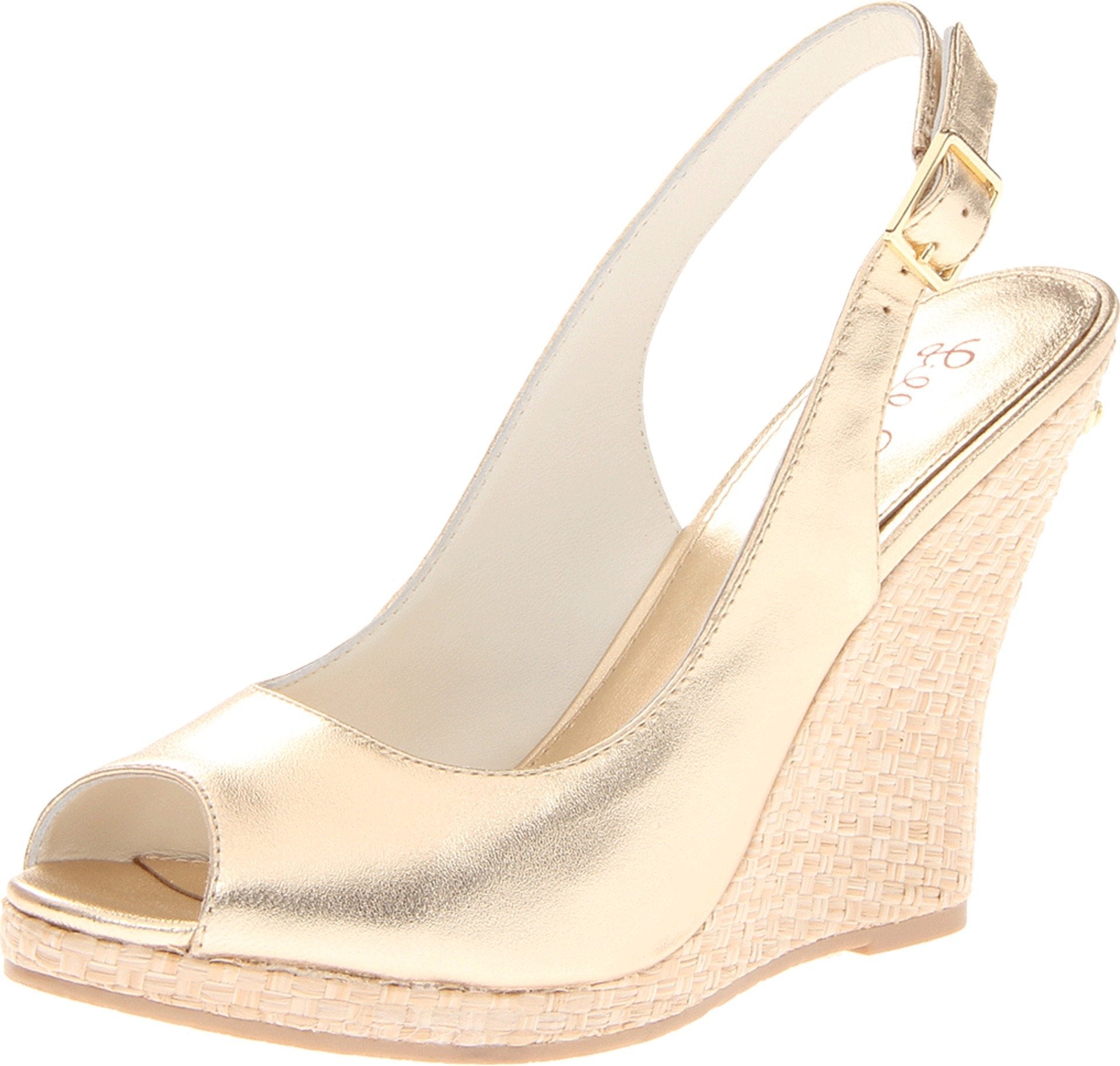 Add some glam to your summer style with the Kristen Wedge! Made of metallic leather upper. Buckle closure. Peep-toe silhouette. Slingback. Woven textile-wrapped wedge and platform. Synthetic lining and footbed. Synthetic sole. Imported. Measurements: Heel Height: 4 1⁄4 in Weight: 9 oz Platform Height: 1⁄2 in Product measurements were taken using size 7.5, width M. Please note that measurements may vary by size. Weight of footwear is based on a single item, not a pair.