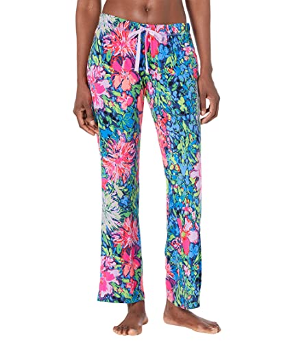 Lilly Pulitzer PJ Knit Pants for Women - Rayon Blend Fabric - Elastic Waistband with Drawstring - Loose-fit Multi Festive Fantasy XXS One Size