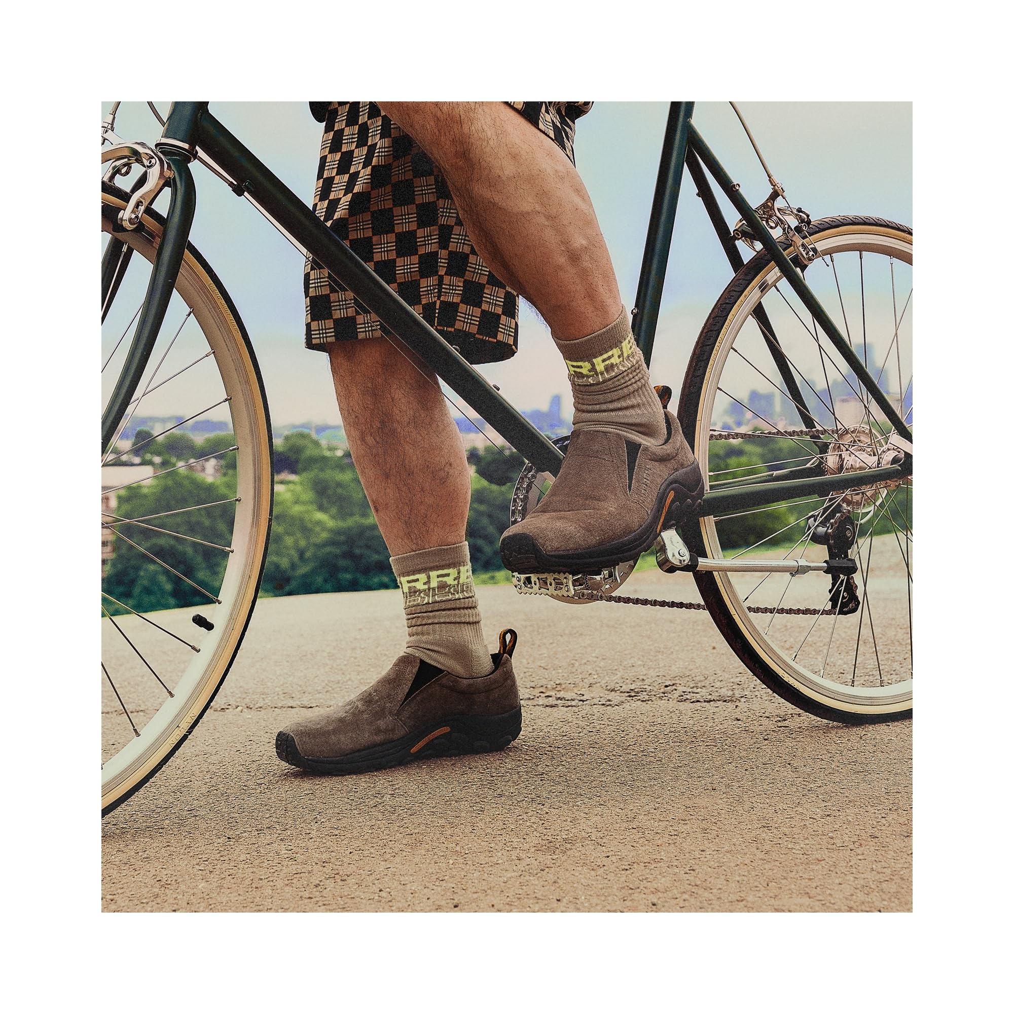 Simple, comfy and casual - the Jungle slip-on from Merrell is a perfect fit. The smooth leather upper keeps things presentable and the elasticized panels deliver a flexible, snug fit and feel. The Jungle Runner sticky rubber outsole has excellent grip across changing terrain while the Air Cushion midsole allows long-wearing comfort. From the Manufacturer