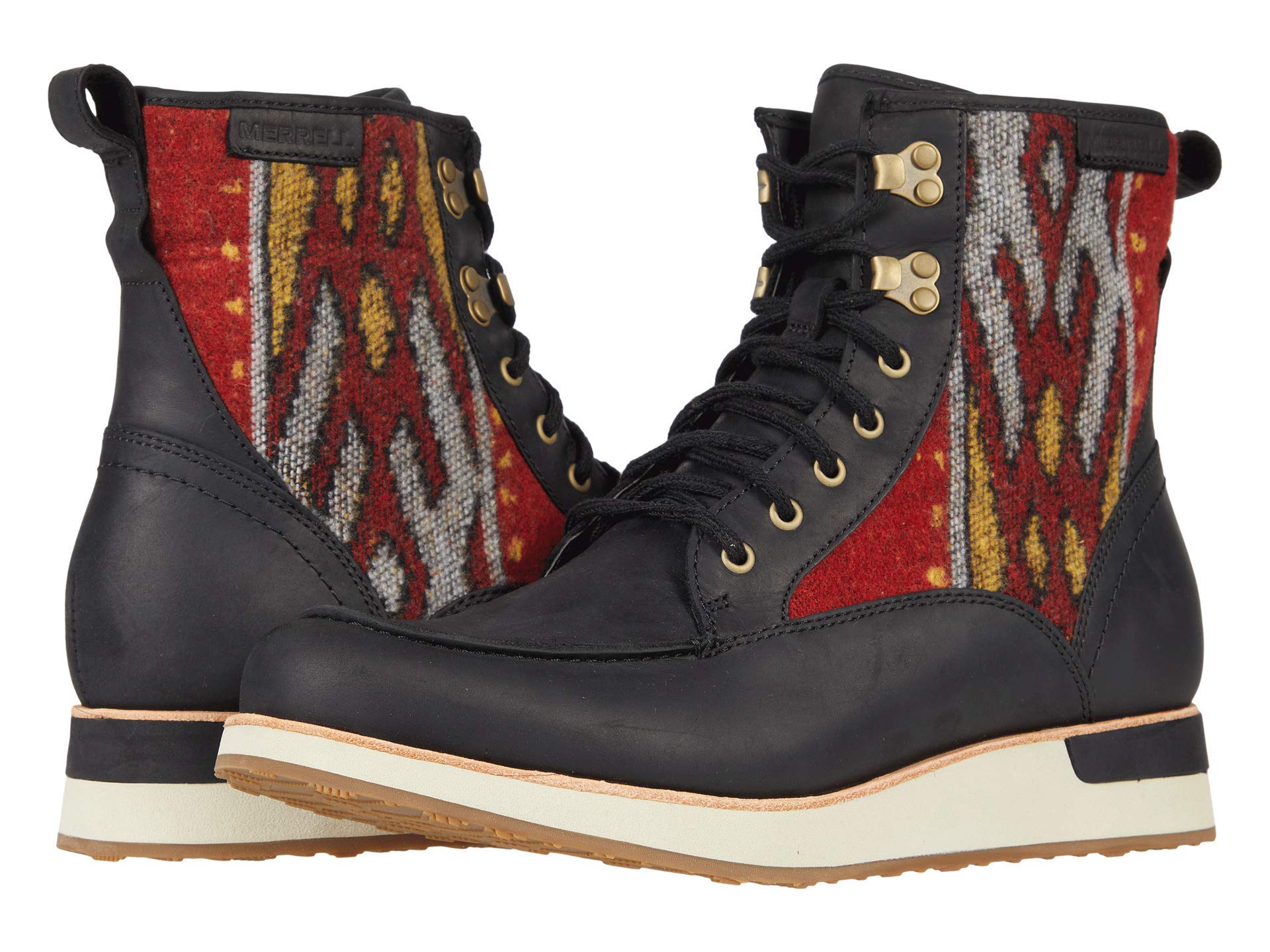 Details: Nothing can get in your way when you wear the comfortable and capable Merrell® Roam Mid boots! Leather upper with textile detail at the sides. Traditional lace-up closure. Lightly padded tongue and collar with pull-tab. Soft textile lining. Molded moc toe construction. Kinetic Fit™ removable insole contours to the foot for improved support. EVA midsole provides stability and cushioning through your stride. Air Cushioning™ in the heel helps absorb shock for a smooth ride. Lugged rubber outsole provides reliable traction on dry or wet surfaces. Imported. Measurements: Heel Height: 1 1⁄4 in Weight: 13.3 oz Product measurements were taken using size 8, width M. Please note that measurements may vary by size. Weight of footwear is based on a single item, not a pair.