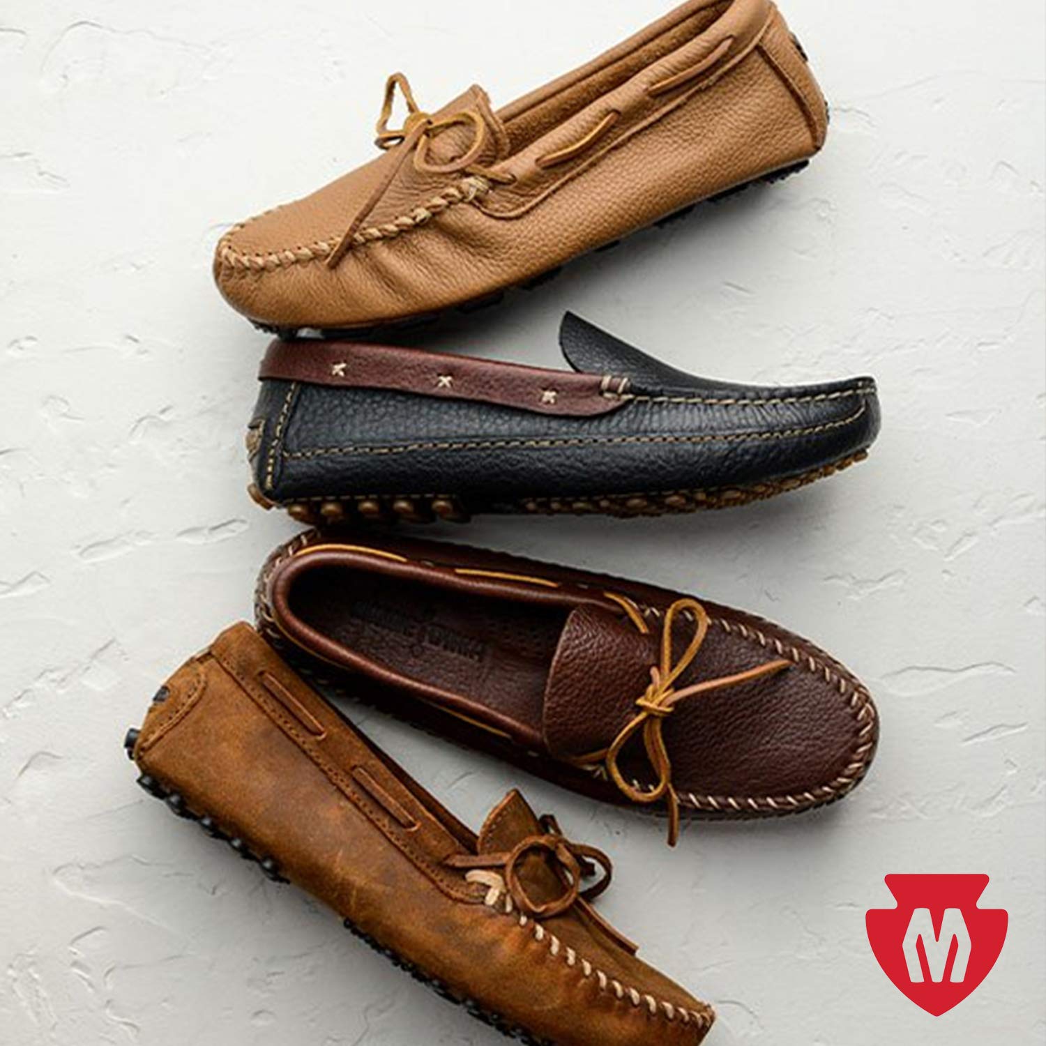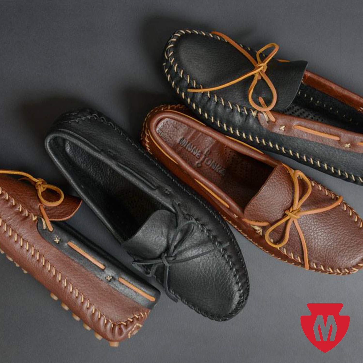 Minnetonka Men's Double Bottom Cowhide Moccasin, Chestnut Lariat, 8 M US