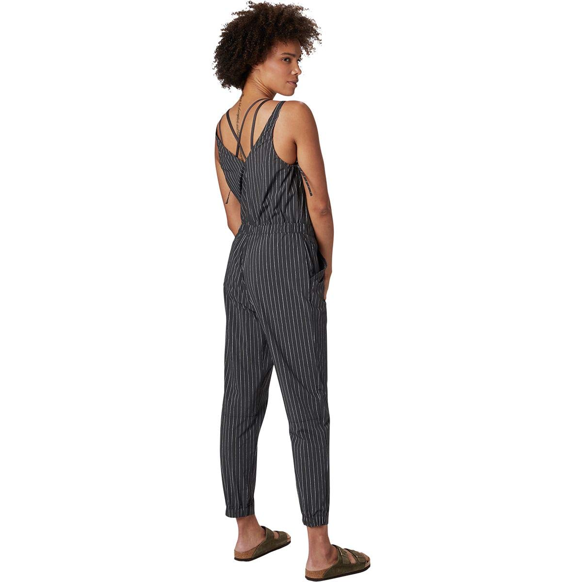 Details: Mountain Hardwear Size Guide These Mountain Hardwear® Railay™ Romper Pants are lightweight, quick-drying, and perfect for any outdoor adventure! A V-neckline in the front and back that offers a balanced look. Tank top straps with adjustable drawcords. Elastic waistband makes for secure fit that's easy to pull on and off. Slash hand pockets in front. Harness compatible gusset provides added comfort and mobility. Half-elastic binding on the hems. Allover vertical stripe design. Branding on left hip. 85% nylon, 15% elastane. Machine wash, tumble dry. Imported. Measurements: Inseam: 28 in Shoulder to Crotch: 29 in Shoulder to Toe: 55 in Product measurements were taken using size 2. Please note that measurements may vary by size.