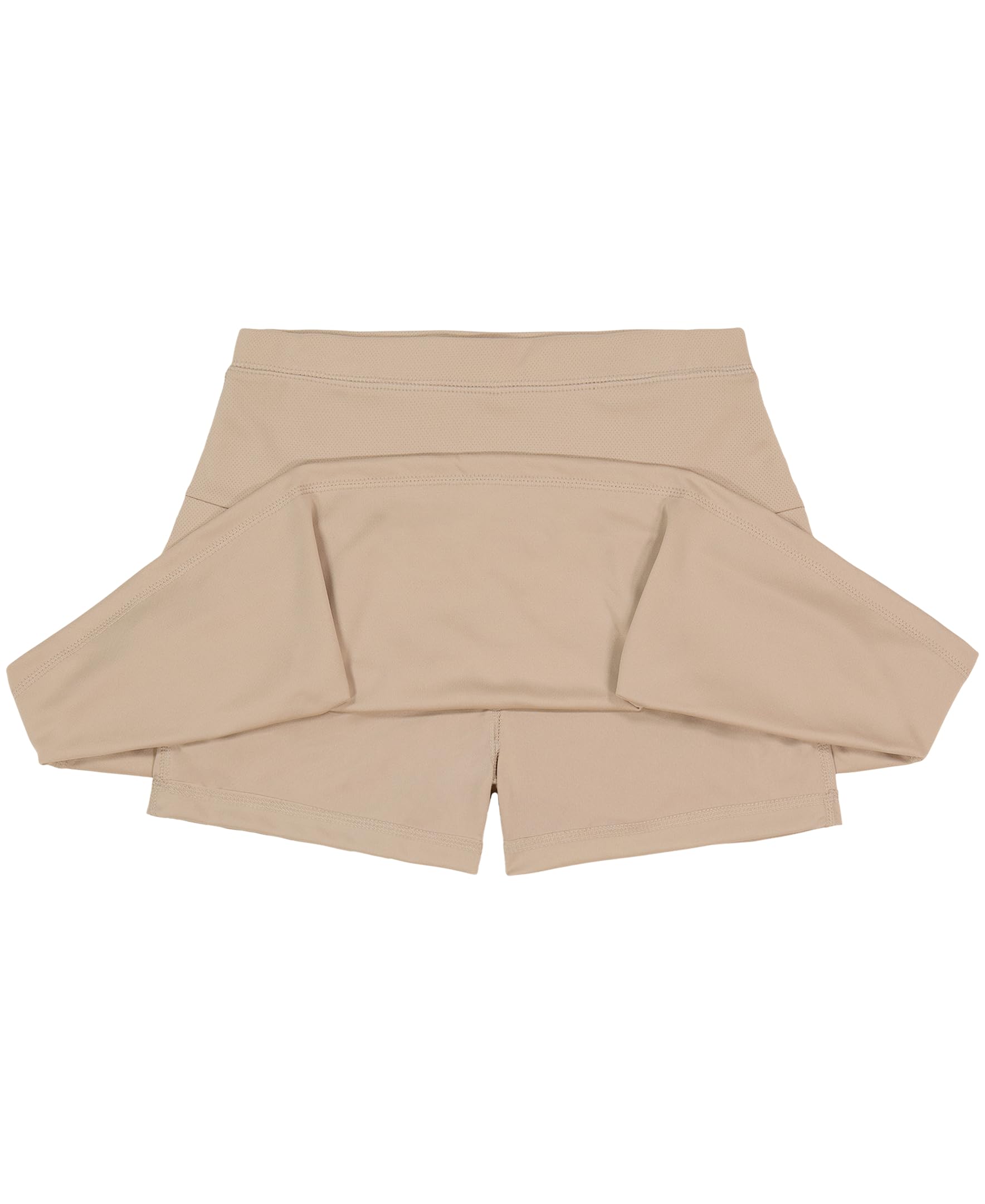 - Sensory-friendly uniform skorts featuring elastic waist with hidden shorts to keep her completely covered and confident