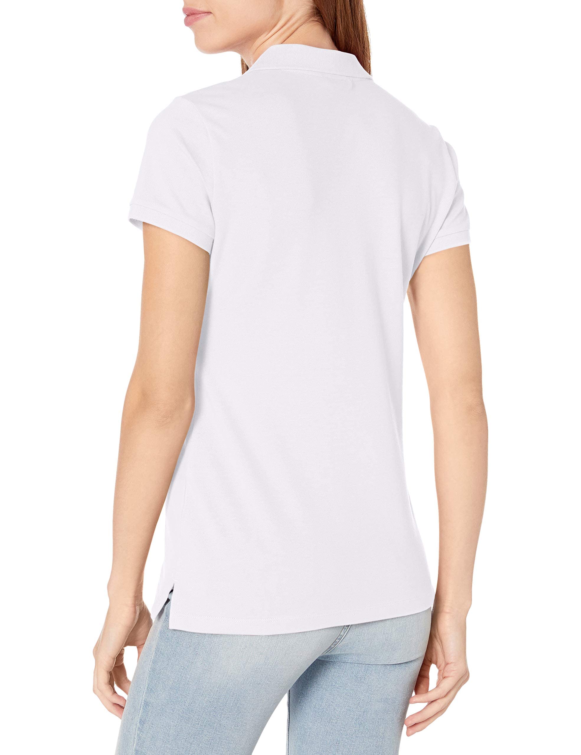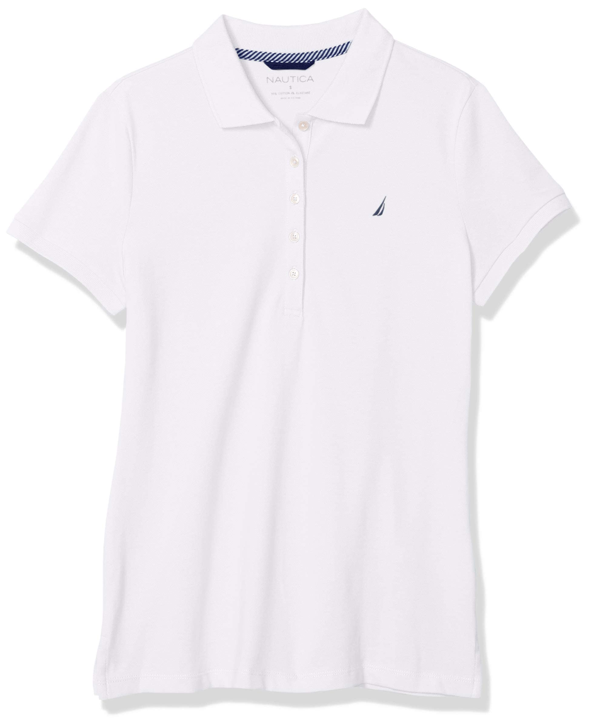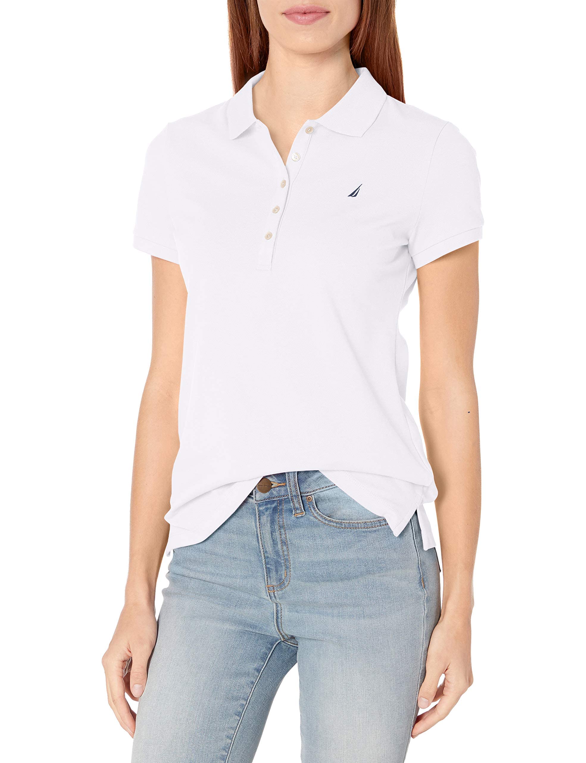 Nautica Women's 5-Button Short Sleeve Breathable 96% cotton 4% spandex Polo Shirt, Bright White, Small