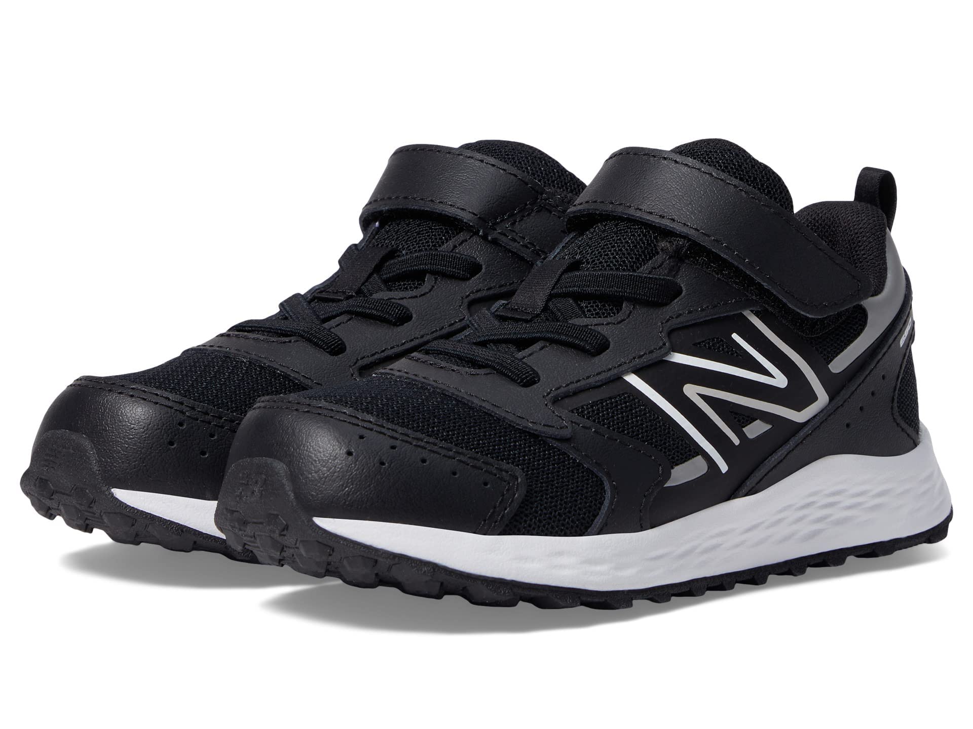 New Balance® Kids Fresh Foam 650v1 Bungee Lace with Top Strap Shoes for Kids – Comfortable Padding Black/Metallic Silver 2.5 Little Kid XW