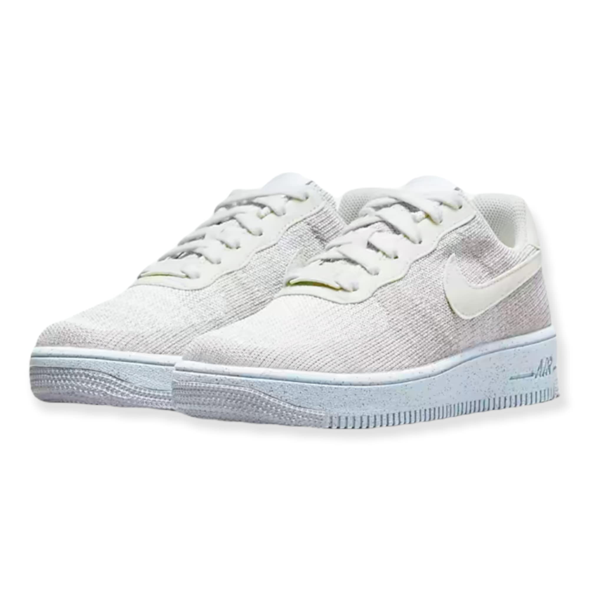 Details: REINVENTING AN '82 HOOPS ICON. The Nike Air Force 1 Crater Flyknit updates classic b-ball style with at least 20% recycled content by weight. Super-airy Flyknit material feels breathable and stretchy around your foot. The speckled sole ups the legendary comfy style that lets you give a little back with every step. Breathable Support Nike Flyknit technology uses strong (yet lightweight) yarns to create fabric that's supportive, stretchy and breathable. Cushioned Comfort Crater foam cushioning, made from a spacey mix of about 12% Nike Grind, feels lightweight and responsive. The hidden Air-Sole unit is designed just the same as the '82 original. More Benefits The Swoosh design, heel and around the laces contain some recycled material. Shown: White/Chambray Blue/Volt/Photon Dust Style: DH3375-101 Air Force 1 Origins Debuting in 1982, the AF1 was the first basketball shoe to house Nike Air, revolutionizing the game while rapidly gaining traction around the world. Today, the Air Force 1 stays true to its roots with the same soft and springy cushioning that changed sneaker history.