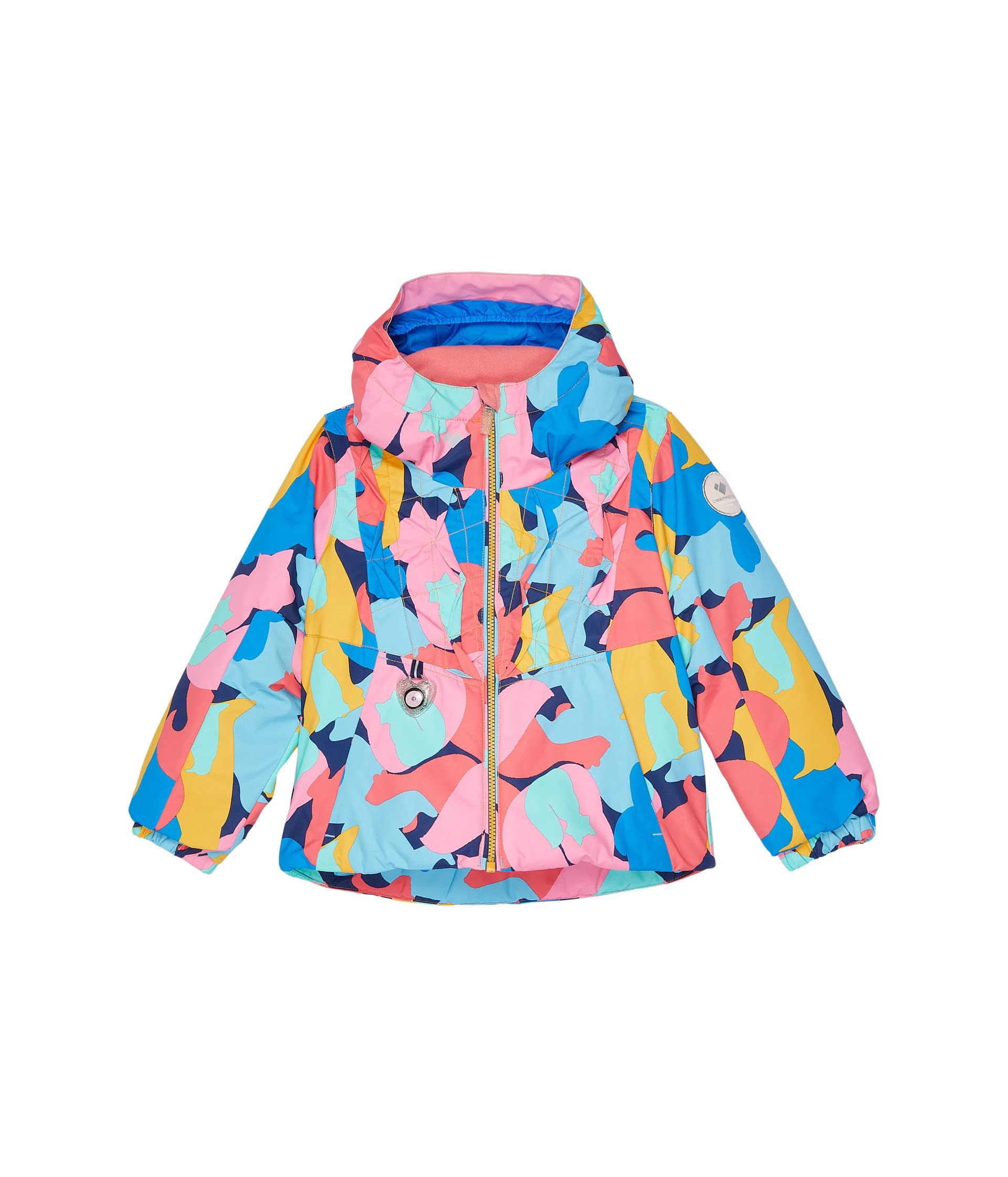 Featured in fun color blocking, exclusive prints and a stylish ruffle detail, the Livy Jacket is a style that any little girl would love to wear. Designed with reflective safety features, snug fitting elastic cuffs and hems, and fleece-lined collars, pockets, ear-warmers, and chin wind-guards. Our innovative “I-Grow”™ Extended Wear System accommodates your girl growing up over the year; and we lovingly encourage passing the jacket along between your family or friends.