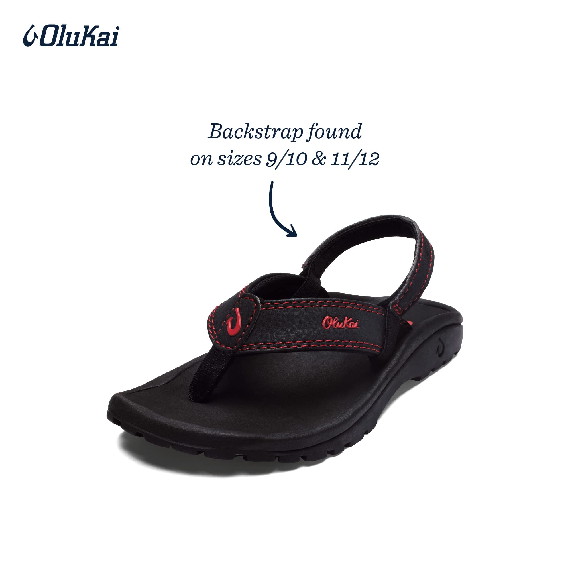 The Olukai® 'Ohana sandals are like a vacation at the beach for your feet. Please be advised that ONLY sizes 9-10 Toddler and 11-12 Little Kid include a heel strap. All other sizes will not feature a heel strap as seen in picture. Water-resistant synthetic leather strap with Makau Logo. The Makau, or bone hook, is the traditional Polynesian symbol worn for strength, good luck, and safe passage over water. Nylon toe post uses a loop connection, inner reinforcement, and an exterior seam stitch for supreme durability. Comfy and quick-drying jersey knit lining and neoprene backer. Anatomical compression-molded EVA midsole features a biomechanically correct shape to support your entire foot. EVA drop-in footbed gives you the perfect fit. Durable rubber outsole with contrast logo and coral reef design. Measurements: Weight: 3 oz Product measurements were taken using size 9-10 Toddler, width M. Please note that measurements may vary by size. Weight of footwear is based on a single item, not a pair.