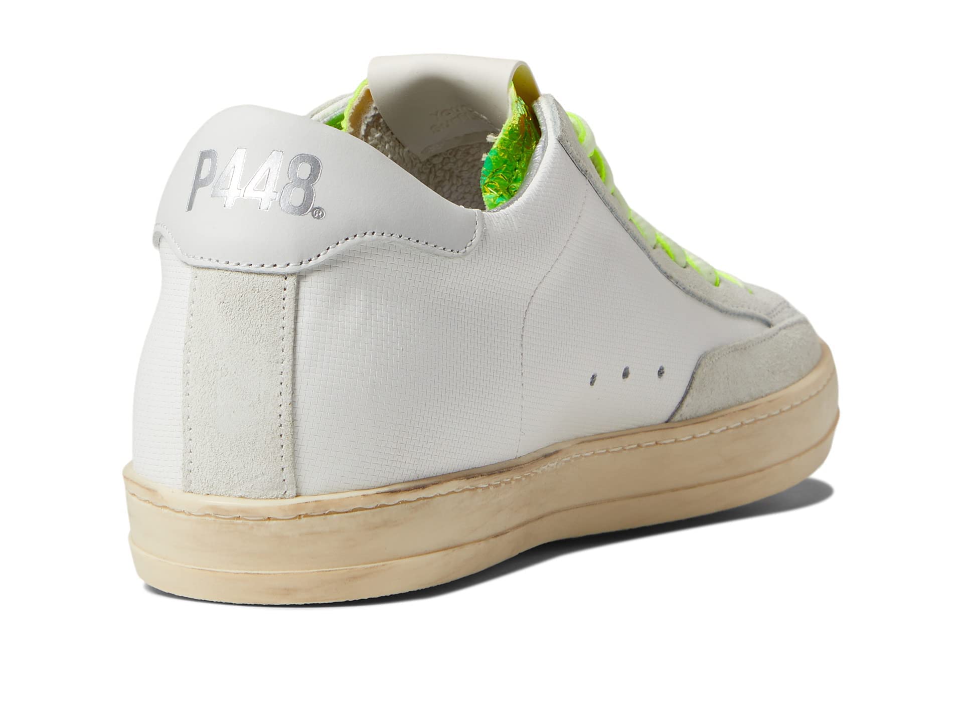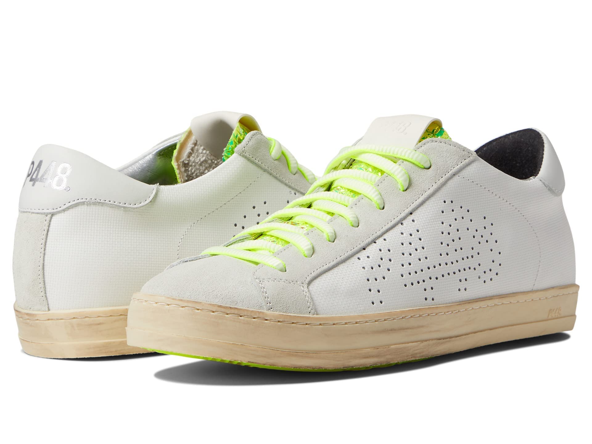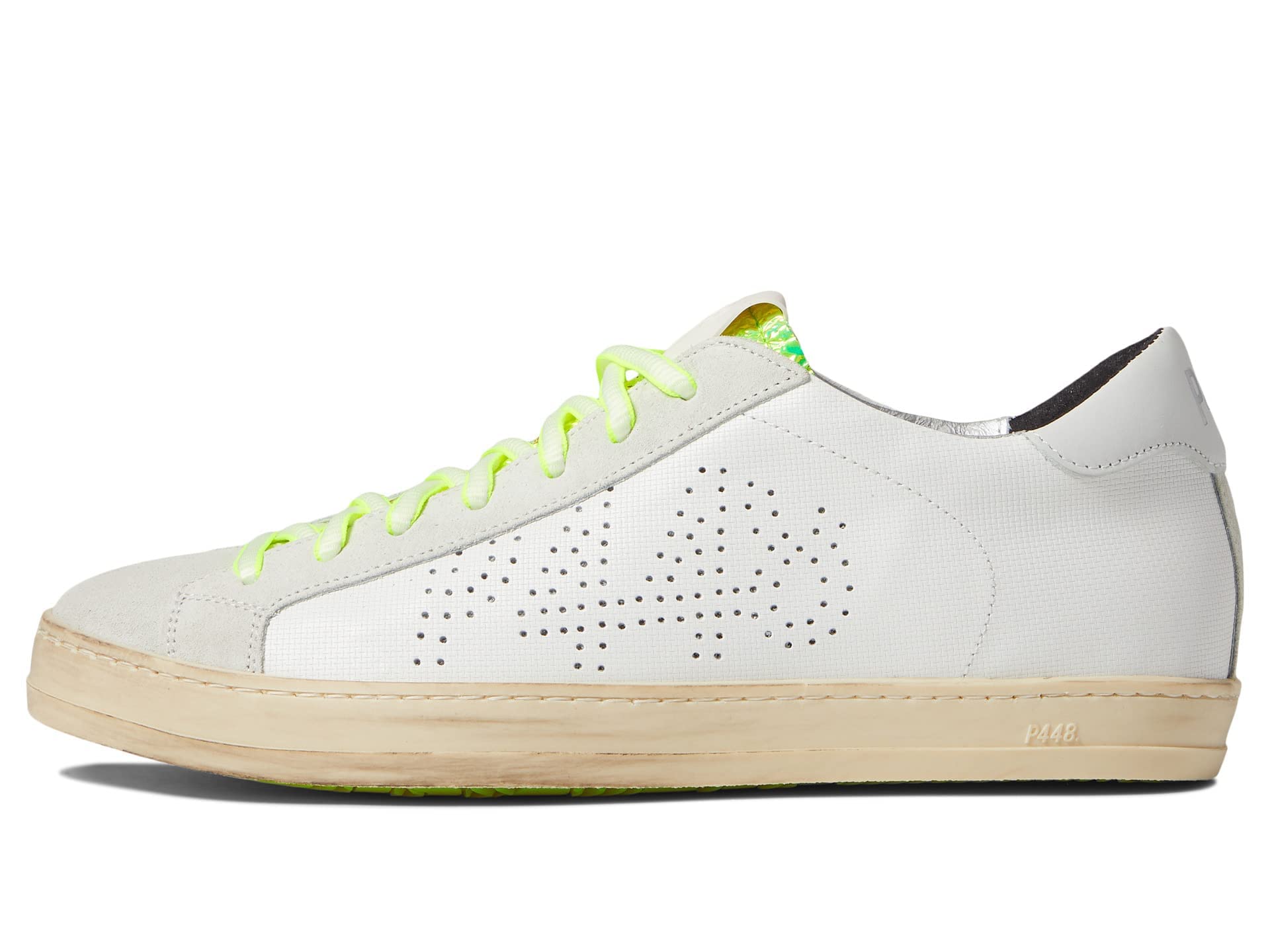 Designer: P448 Item: JOHN W Material: HautWeiss P448 sneakers model John with semi-laser upper with a black patent leather heel tab and a worn effect sole. Padded tongue, loose insole. Additional information: - Made in Italy - Season: spring/summer - Upper material: leather with suede details - Lining: fabric - Sole: rubber - Sole height at highest point: 2 cm