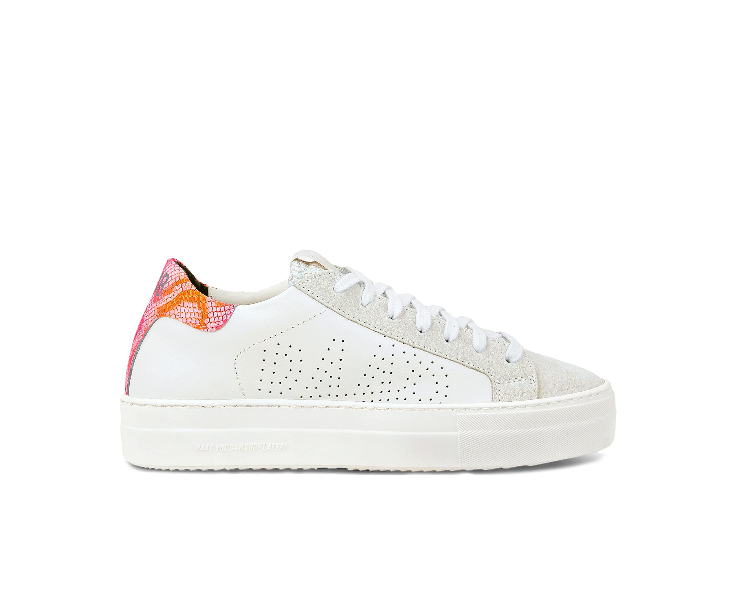 Details: Walk through life on the wild side in the P448® Thea Low-Top Platform Sneaker. The cool-girl sneaker is constructed from a combination of textile, leather or synthetic upper with unexpected textures, finishes and color combinations to up your shoe game. Low-top sneaker with a round, closed toe. Adjustable, lace-up front. Lightly padded tongue with a soft terry-loop interior lining. Removable memory-foam footbed for added comfort. Textured rubberized platform sole. Made in Italy. Measurements: Weight: 14 oz Product measurements were taken using size 39 (US Women's 9), width M. Please note that measurements may vary by size. Weight of footwear is based on a single item, not a pair.