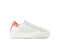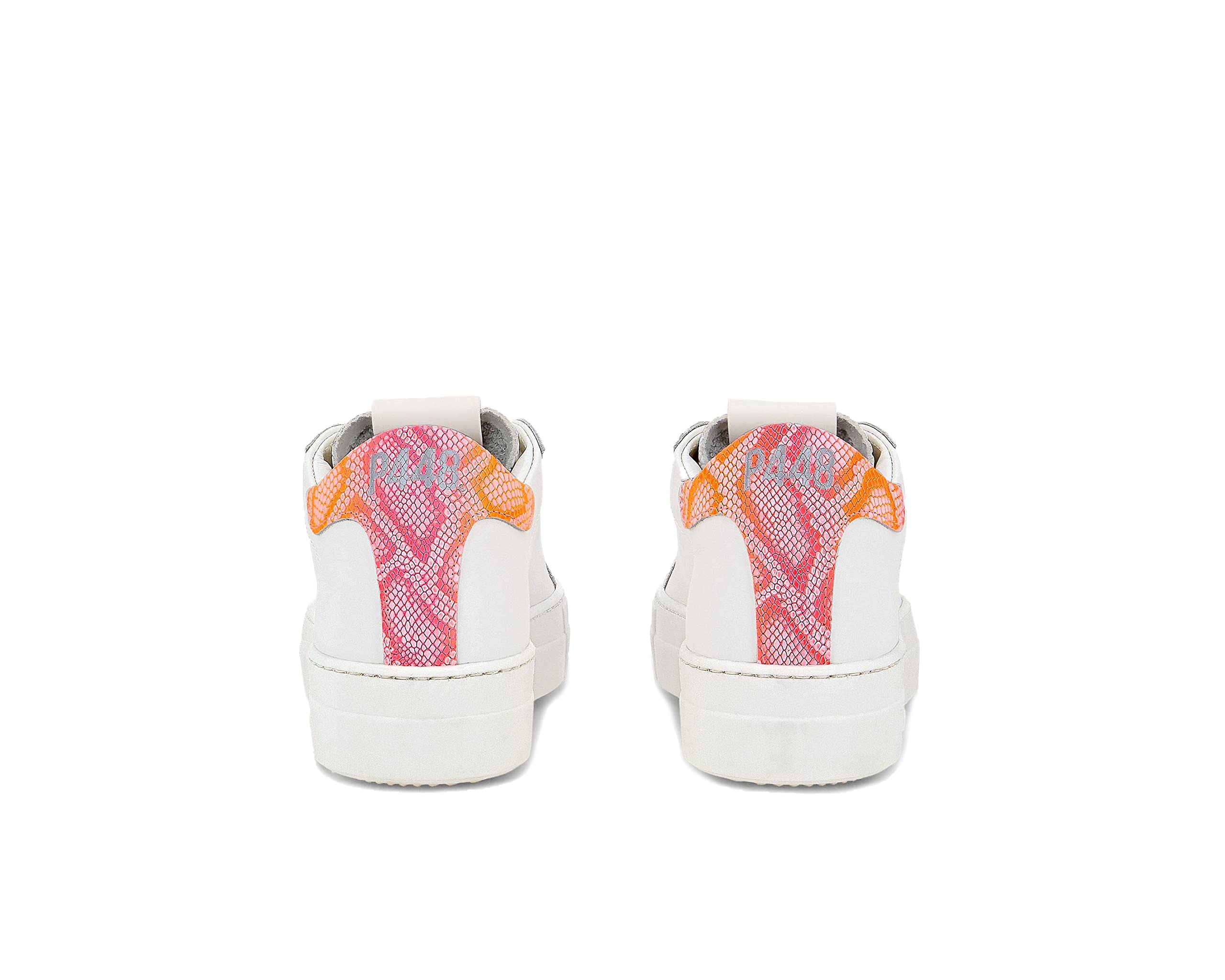 - Fluorescent pink citrus snakeskin textured leather heel tab