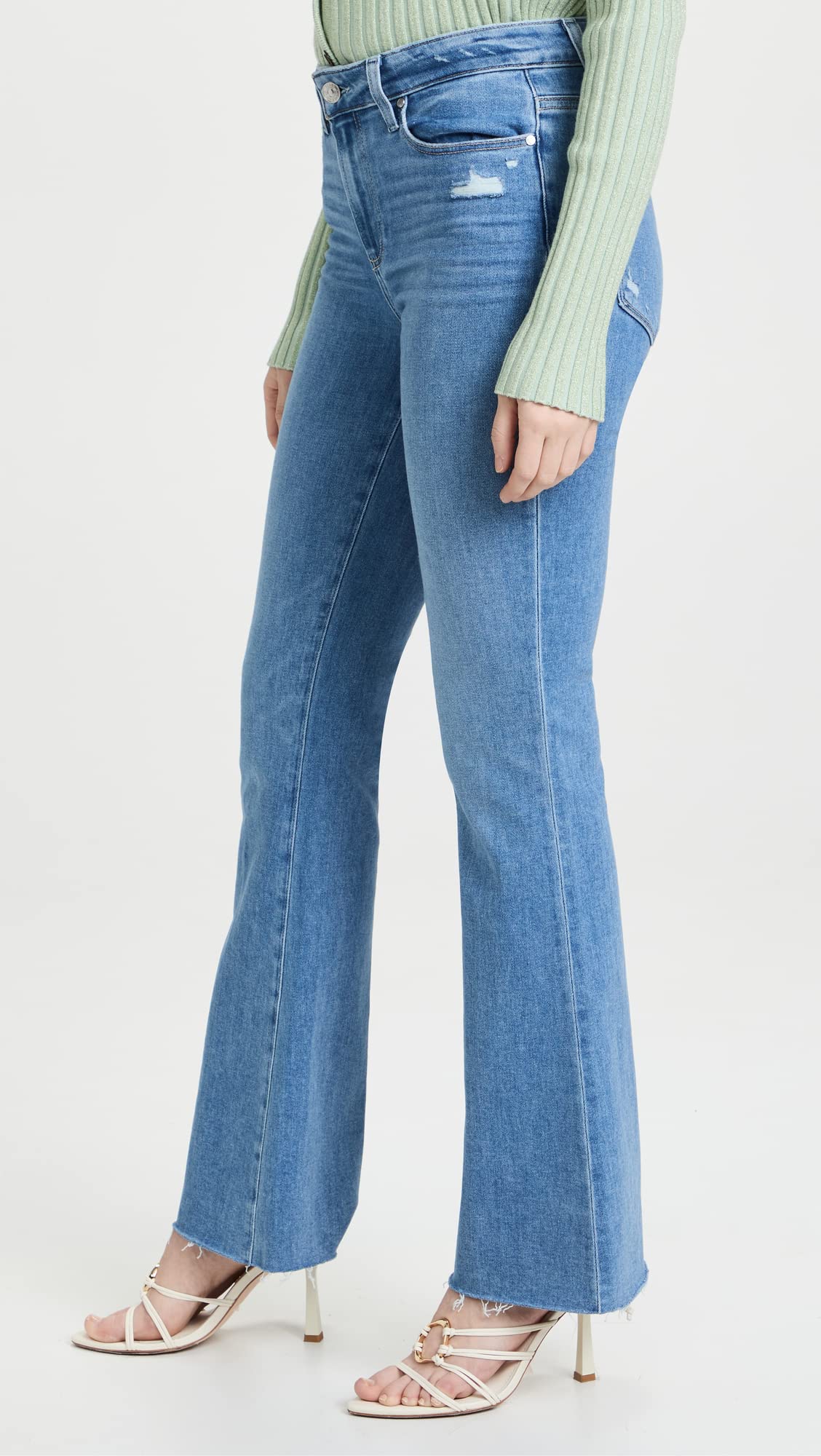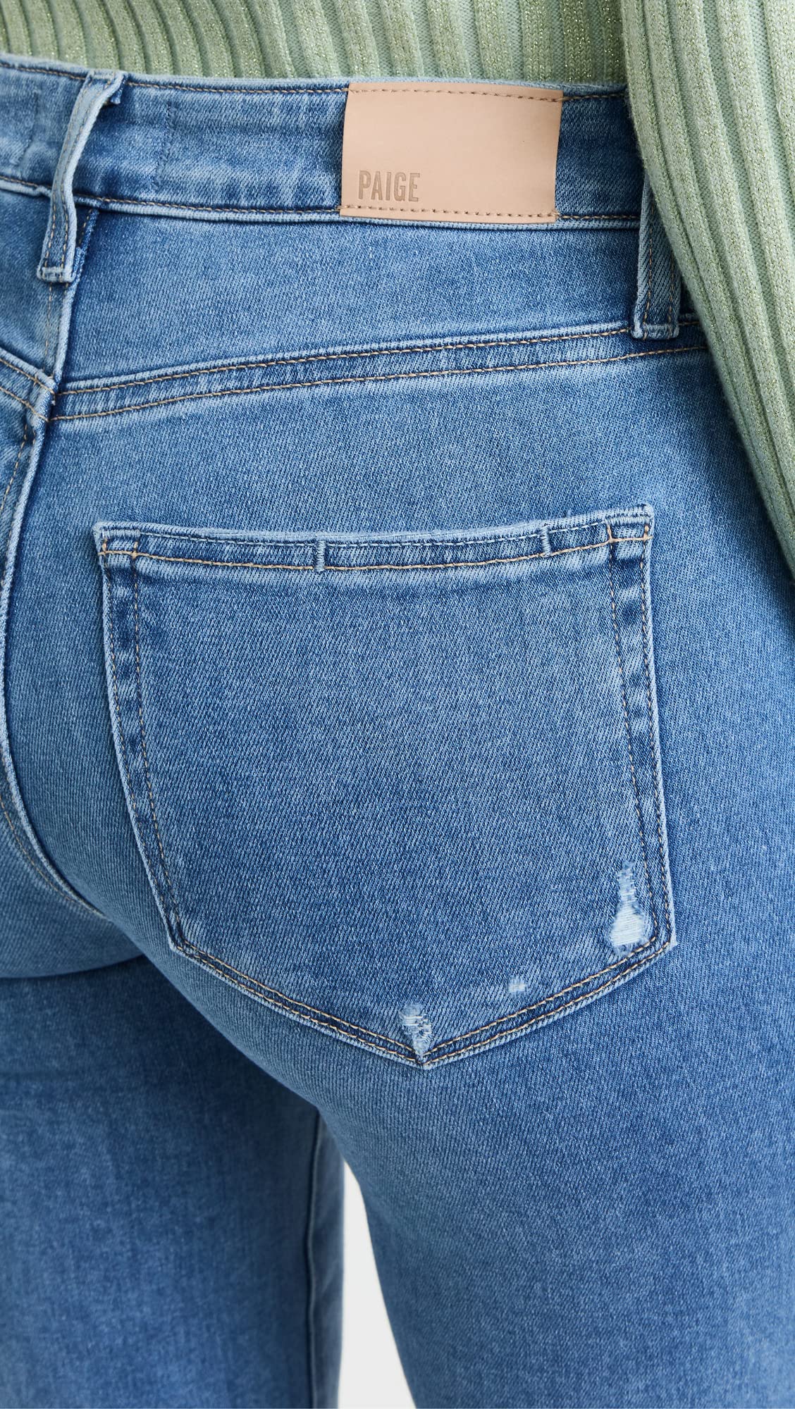 The High Rise Laurel Canyon is a vintage PAIGE style that is making a big comeback. This high-rise flare is cut from our bestselling TRANSCEND Vintage denim in a gorgeous light blue wash with lived-in details and a raw destroyed hem. TRANSCEND Vintage offers the look of authentic vintage denim but is incredibly comfortable with plenty of stretch and recovery.