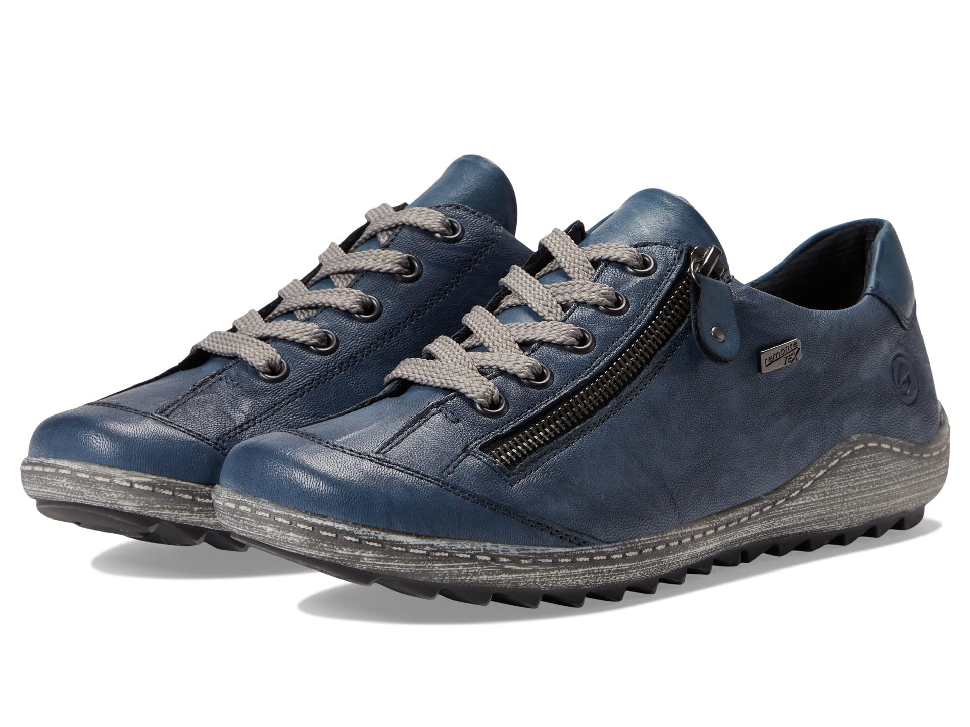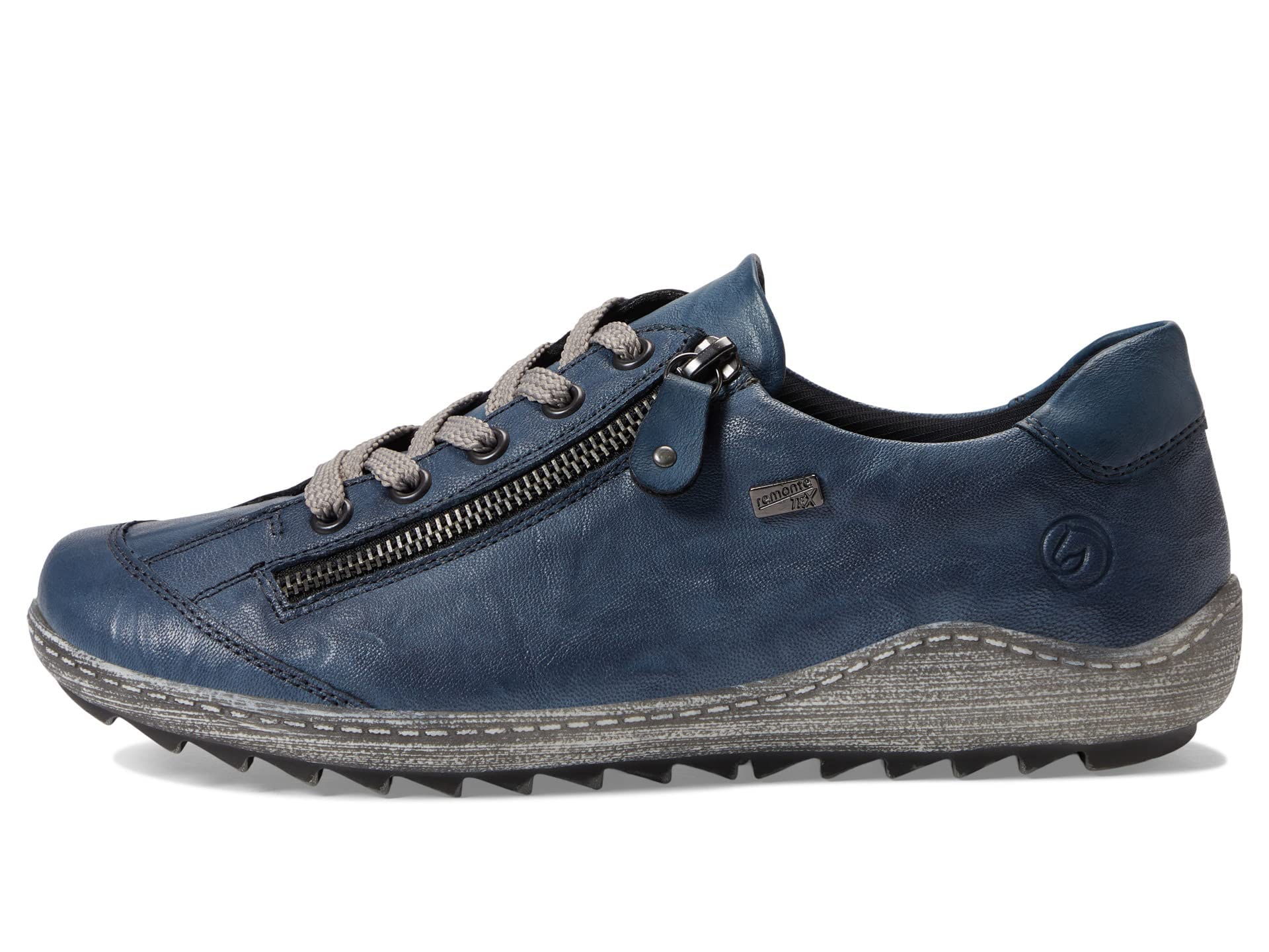 Keep dry in dreary weather with the Rieker R1402 Liv 02 sneaker. The leather upper features both adjustable laces with a zipper closure for easy and secure wear. Part of the Rieker Remonte Dorndorf Collection. Made with RemonteTex, which offers excellent water resistance and breathability for added protection against the cold. Drysport lining with a removable padded footbed. Grippy TR outsole.