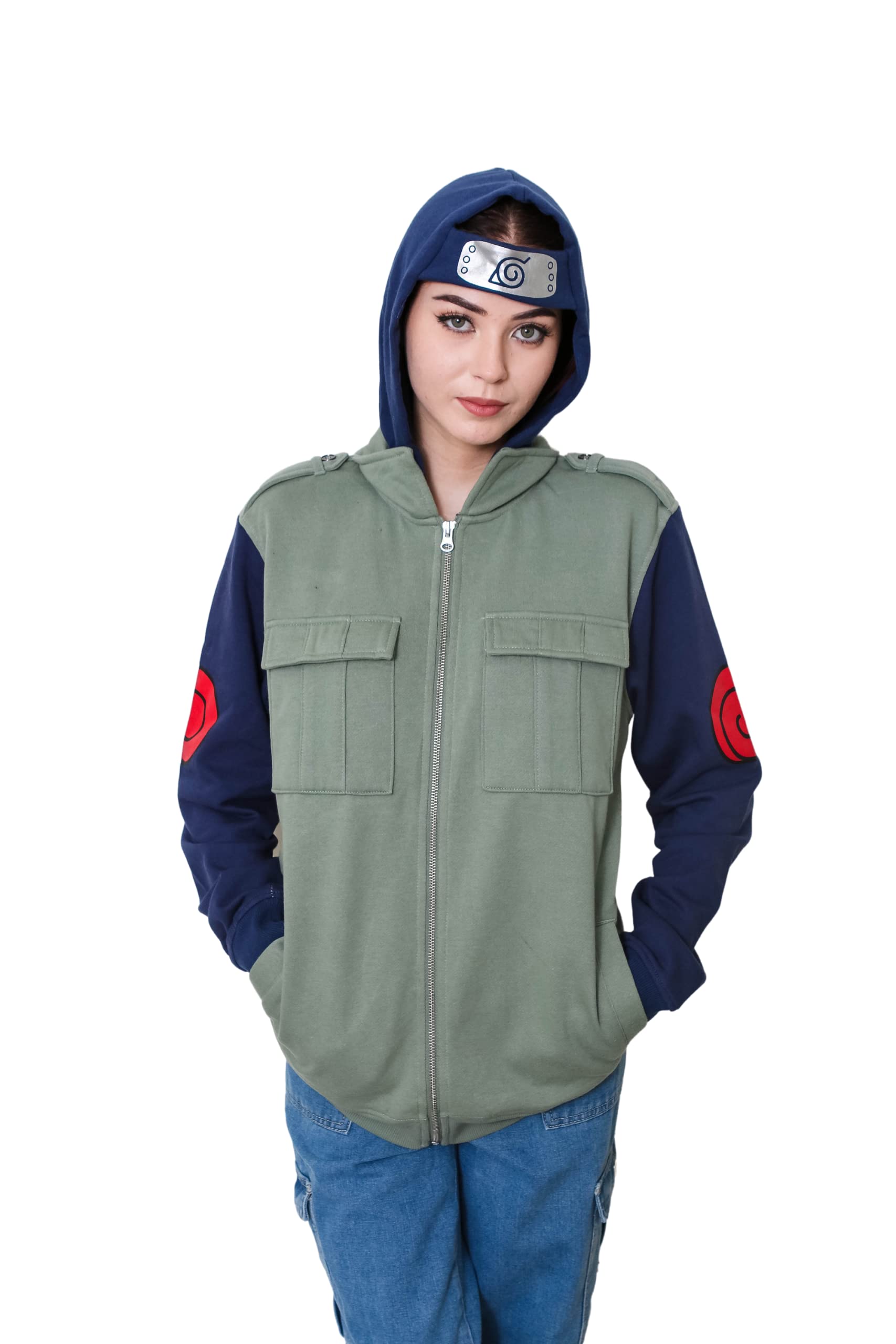 - Green Hoodie Features: Zip up hoodie features a headband on the hood & a custom-designed collar. Full zipper design of naruto shippuden so that you do not freeze on the neck & head even in cool winds.