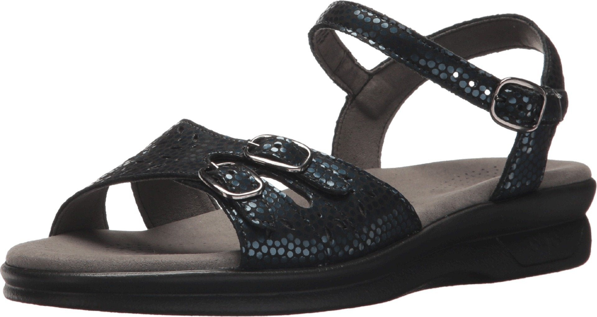 Dive deep into comfort with the SAS Duo Adjustable Comfort Sandal. Genuine leather uppers with laser cut details at toe strap. Adjustable buckle with hidden stretch at ankle strap. Two adjustable buckles at toe strap. Breathable leather linings. Features SAS Tripad Cushions designed to comfort all three pressure points; the inside ball, outside ball, and heel for all-day support. Soft Step offers a firm heel counter with a wide base that provides extra stability and absorbs shock. Made in the U.S.A.