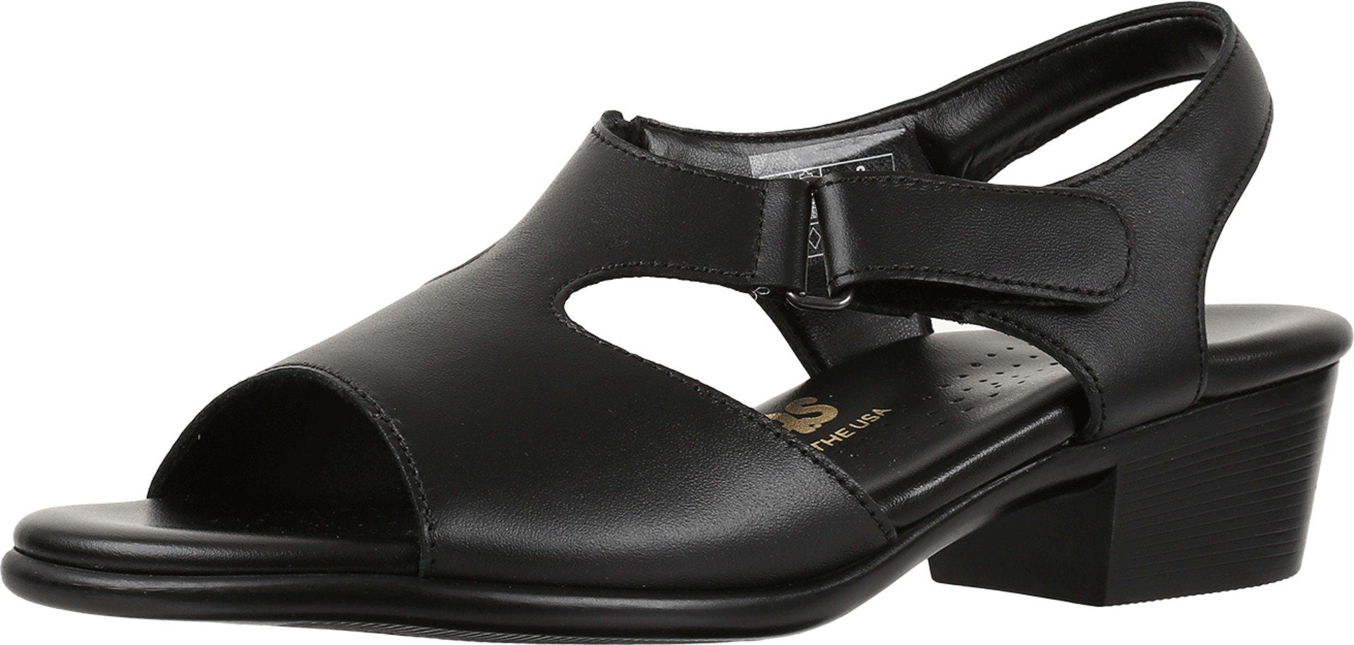 Get dolled up with the sleek Suntimer sandal from SAS(R). Premium leather uppers with side cutouts and an open toe. Ankle strap with adjustable hook- and-loop closure at lateral side. Medial side goring for a gentle fit