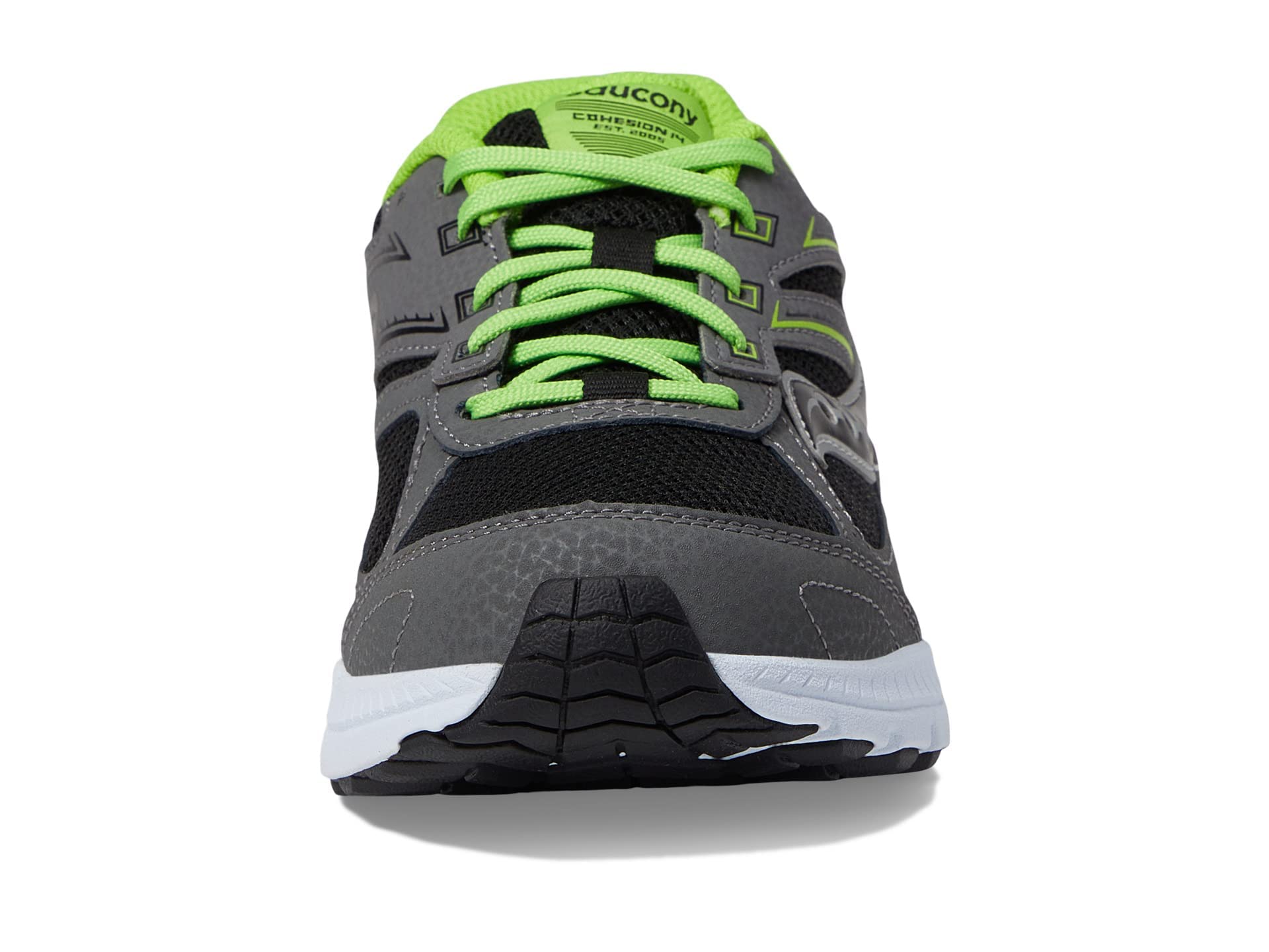 Saucony Cohesion 14 Lace to Toe Sneaker, Grey/Black/Green, 3.5 Wide US Unisex Big_Kid