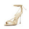 - Materials: Patent Synthetic | Cow leather lining | Cow leather outsole|Upper format: Multistraps|Heel Type: High Heel|Heel Style: Stiletto|Closure Type: Lace-up|Toe Style: Round toe|Counter Type: Closed|Heel Height: 4.5in | 116mm|Rubber patch at the heel.|SKU: S2054100060003
