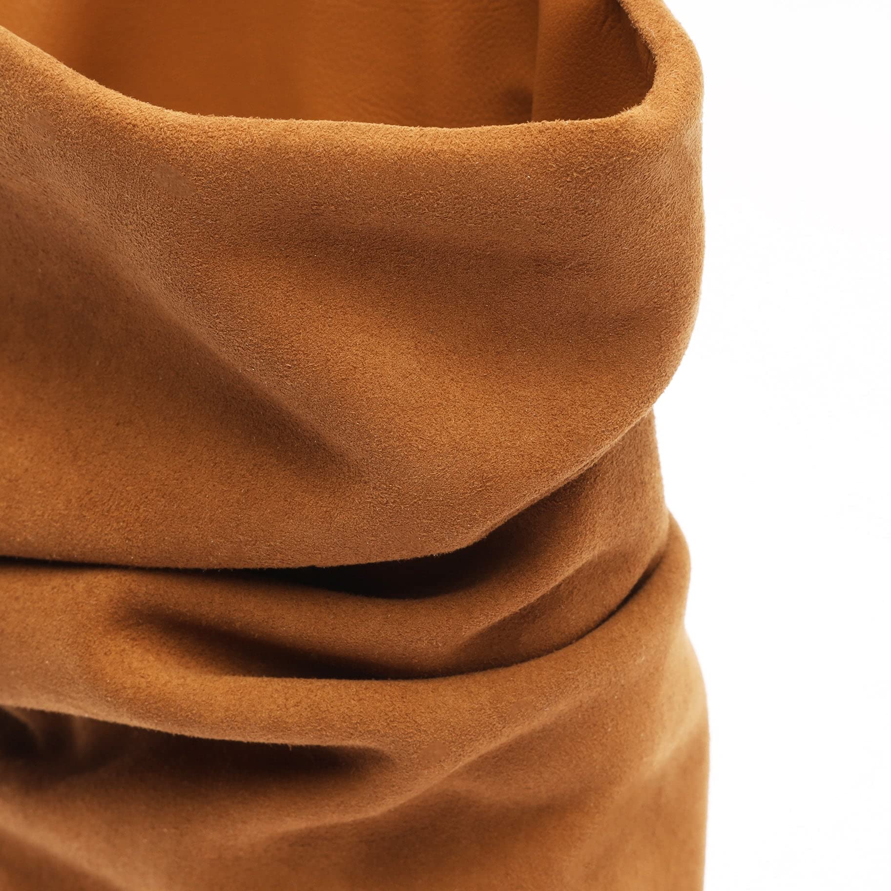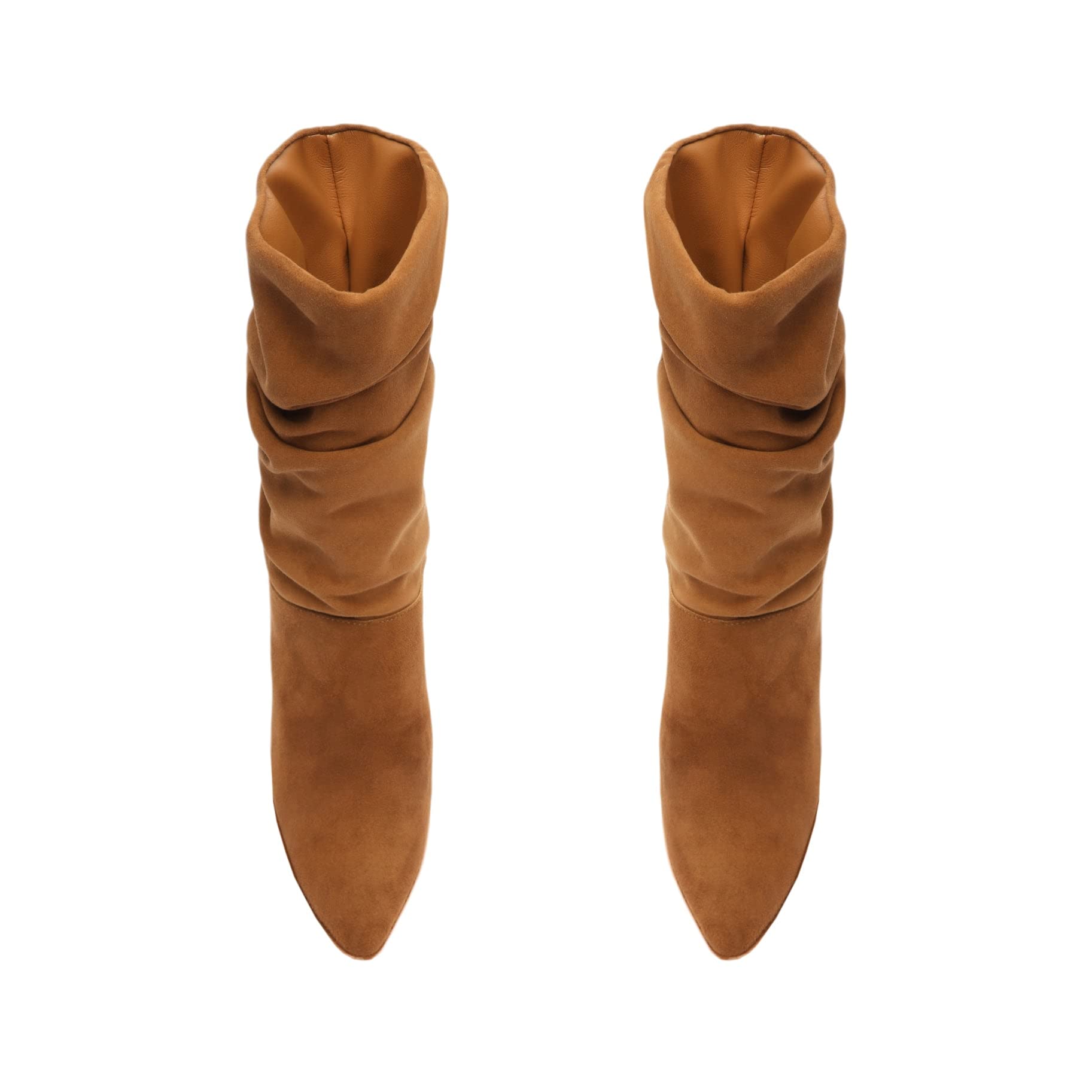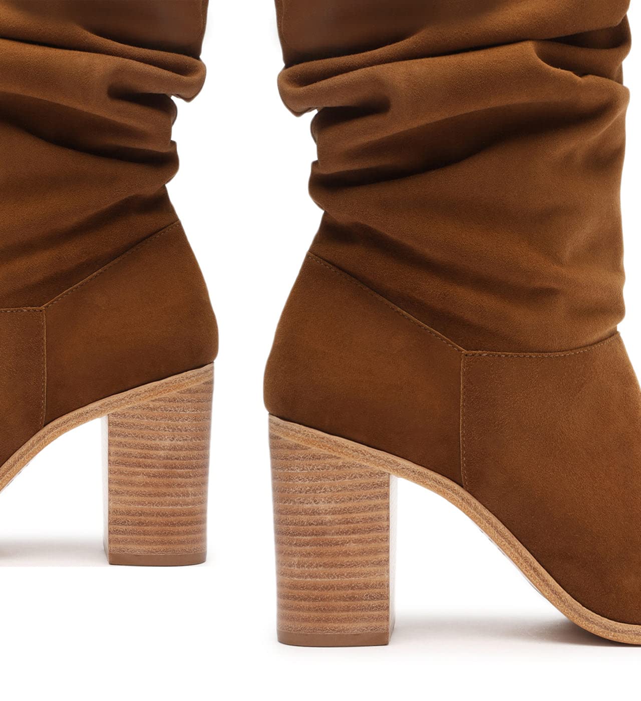 - Materials: Suede | Cow leather lining | Cow leather outsole|Upper format: Slouch|Heel Type: Mid heel|Heel Style: Block|Closure Type: Slip-on|Toe Style: Round toe|Counter Type: Closed|Shaft Circumference: 13.6in | 340mm|Shaft Height: 7.6in | 190mm|Heel Height: 3.3in | 85mm|Rubber patch at the heel.|SKU: S2013201050003