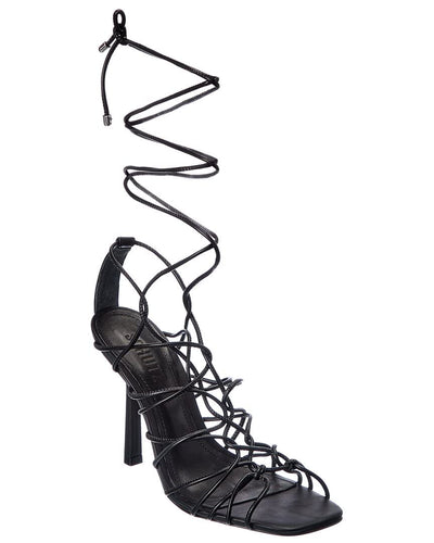Step up and stand out in the Schutz Heyde heels. Wrap around ankle tie. Strappy design all over top of foot. Open toe design. Square toe silhouette. Stiletto style heels. Leather upper. Leather lining and insole. Leather outsole. Made in Brazil.