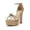 • Materials: Nubuck | Cow leather lining | Cow leather outsole|Upper format: Multistraps|Upper Detail: Embellished upper|Heel Type: High Heel|Heel Style: Block|Closure Type: Buckled strap|Toe Style: Round toe|Counter Type: Closed|Platform Height: 50mm|Heel Height: 5.3in | 135mm|Rubber patch at the heel.|SKU: S2108600270001