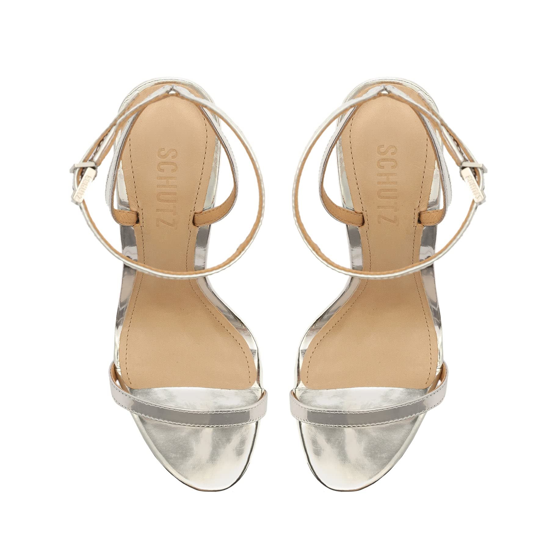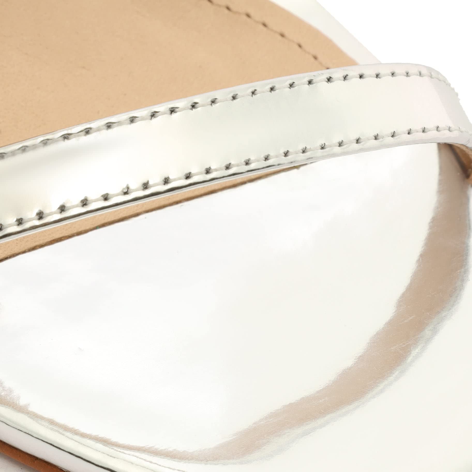 - Materials: Specchio Leather | Cow leather lining | Cow leather outsole|Upper format: Unique strap|Heel Type: High Heel|Heel Style: Stiletto|Closure Type: Buckled strap|Toe Style: Round toe|Counter Type: Open|Heel Height: 4.3in | 110mm|Rubber patch at the heel.|SKU: S2152900020007