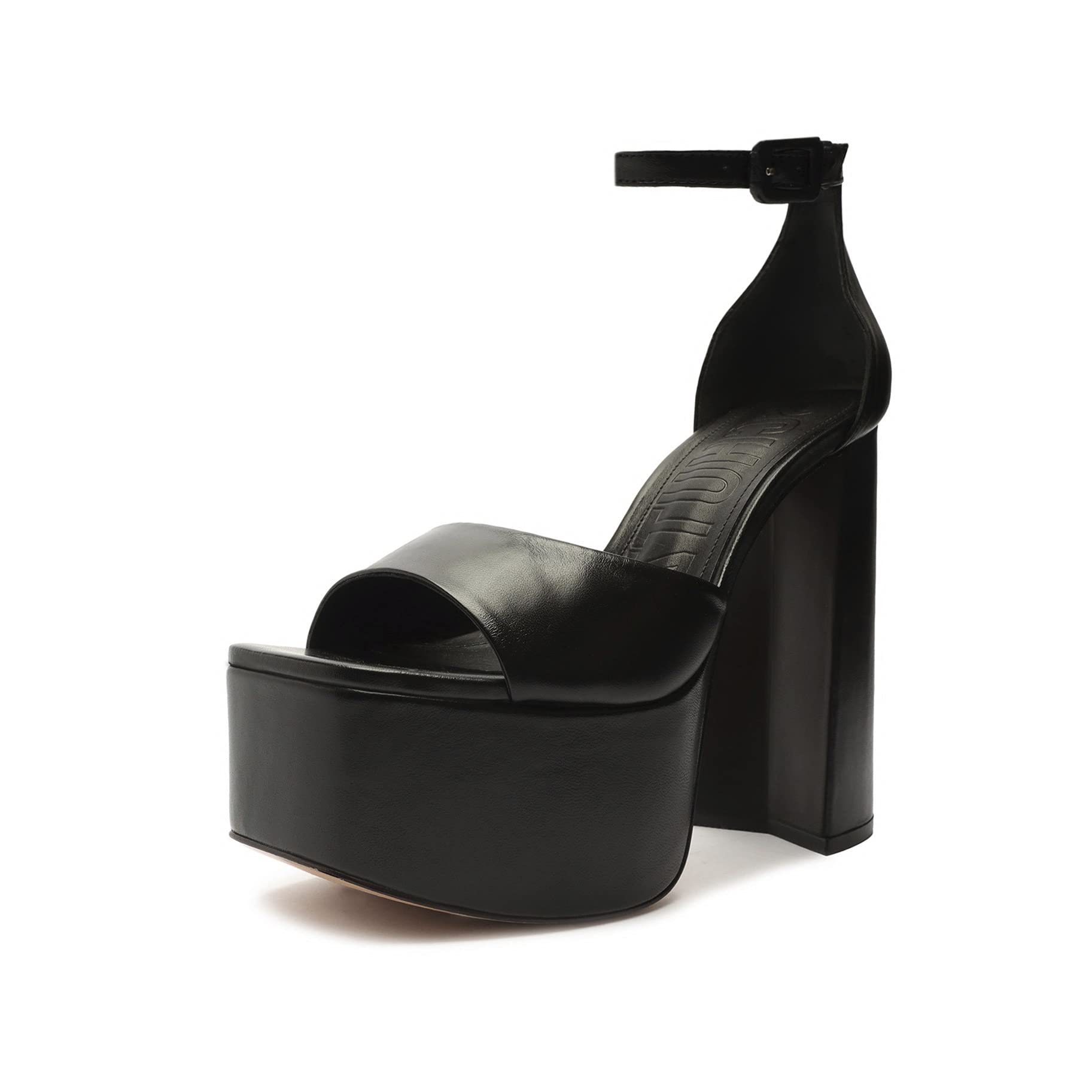 - Materials: Nappa Leather | Cow leather lining | Cow leather outsole|Upper format: High upper leather|Rubber patch at the heel.|Heel Type: High Heel|Heel Style: Platform|Closure Type: Buckled strap|Toe Style: Square toe|Counter Type: Closed|Platform Height: 55mm|Heel Height: 5.5in | 140mm|SKU: S2137000040006|Please note this style runs big. We suggest sizing down for a better fit.