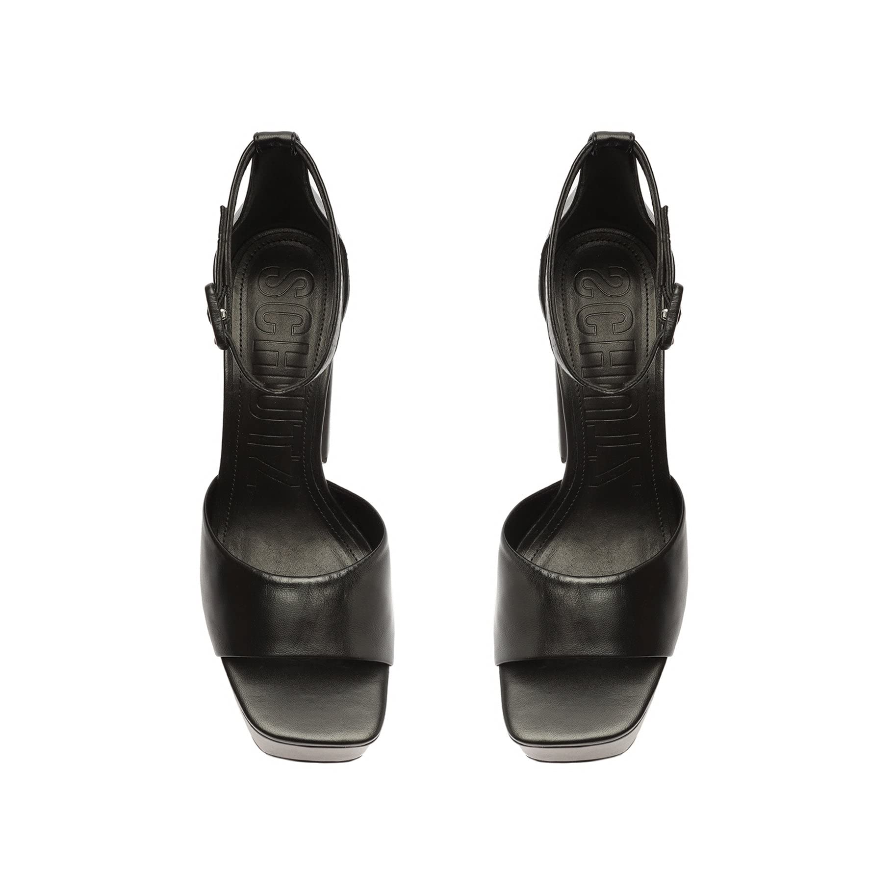 - Materials: Nappa Leather | Cow leather lining | Cow leather outsole|Upper format: High upper leather|Rubber patch at the heel.|Heel Type: High Heel|Heel Style: Platform|Closure Type: Buckled strap|Toe Style: Square toe|Counter Type: Closed|Platform Height: 55mm|Heel Height: 5.5in | 140mm|SKU: S2137000040006|Please note this style runs big. We suggest sizing down for a better fit.