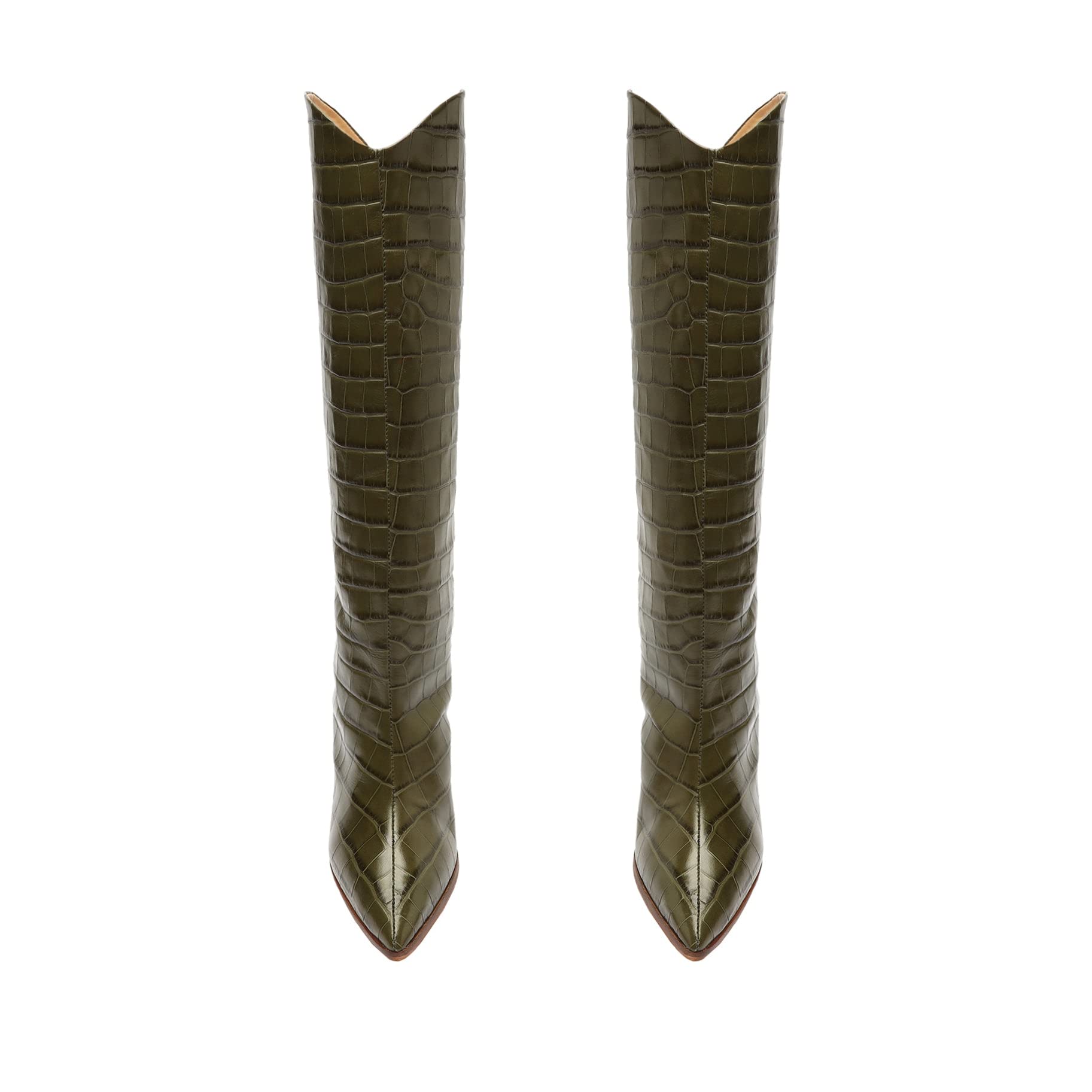 - Materials: Crocodile Embossed Leather | Cow leather lining | Cow leather outsole|Upper format: Plain upper|Heel Type: Mid heel|Heel Style: Block|Closure Type: Zip closure|Toe Style: Round toe|Counter Type: Closed|Shaft Circumference: 14.8in | 370mm|Shaft Height: 13.6in | 340mm|Heel Height: 3.3in | 85mm|Rubber patch at the heel.|SKU: S2013200680054