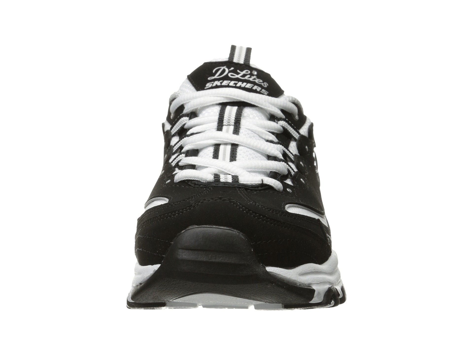 Skechers Women's D'Lites Fit Biggest Fan Sport Sneaker Shoes, Black/White, Size 9.5