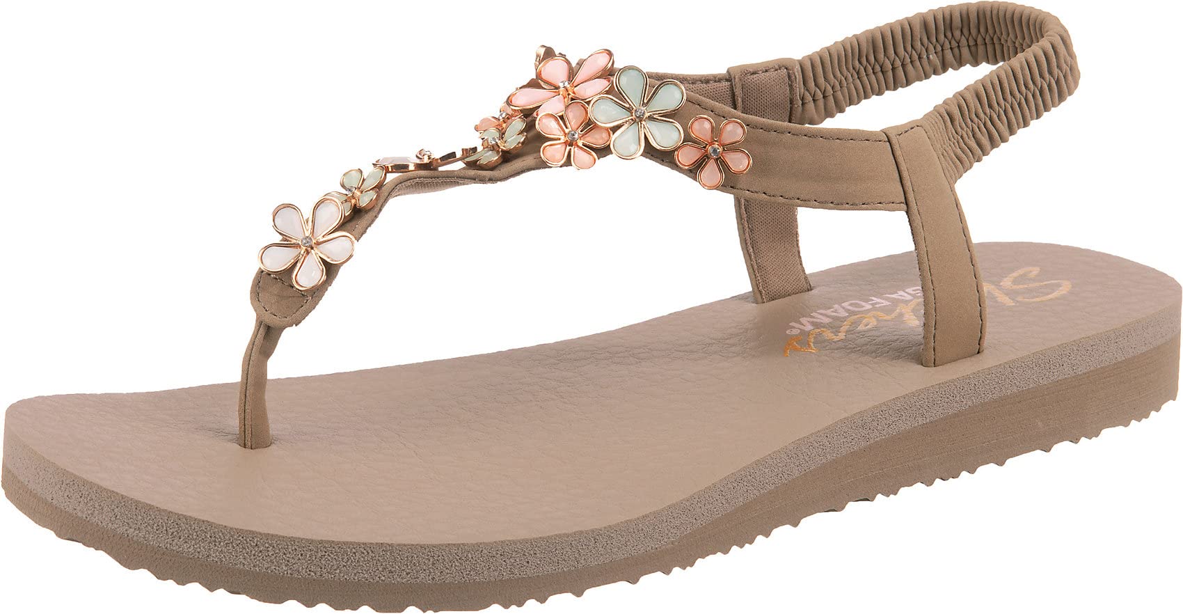Skechers Women's Meditation-Glass Daisy Flip-Flop, Taupe Multi, 9