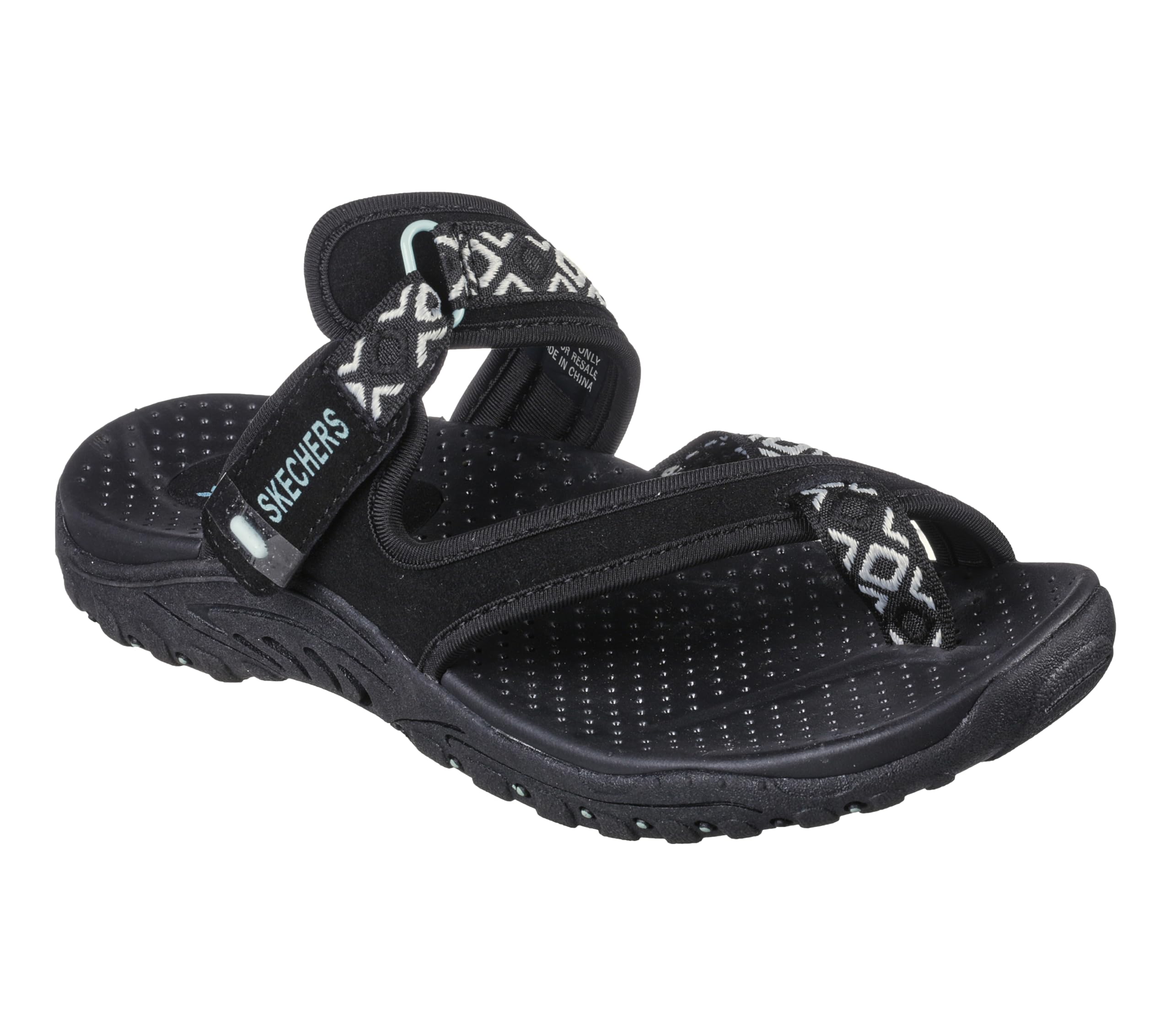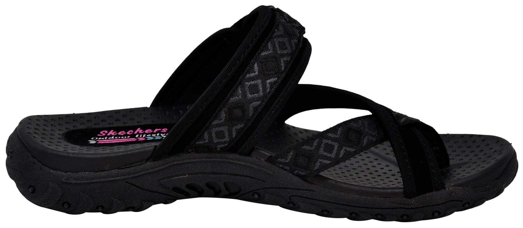 Skechers womens Reggae - Trailway Flip-Slop Sandals,black,8 M US