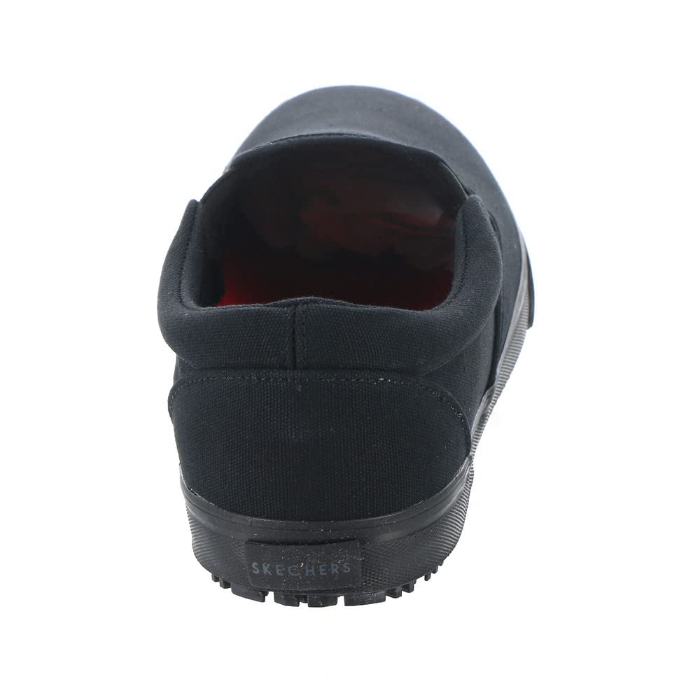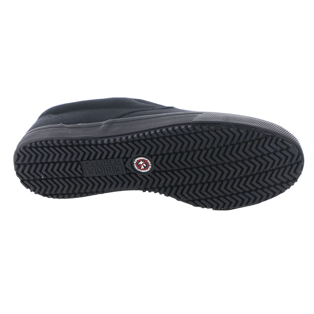 *Laid-back work shoe from Skechers Work *Water and stain-resistant soft canvas upper *Slip-on fit *Skechers Memory Foam cushioned comfort insole *Lightweight vulcanized-look midsole with textured toe bumper *Slip-resistant traction outsole with oil resistance *1" heel height