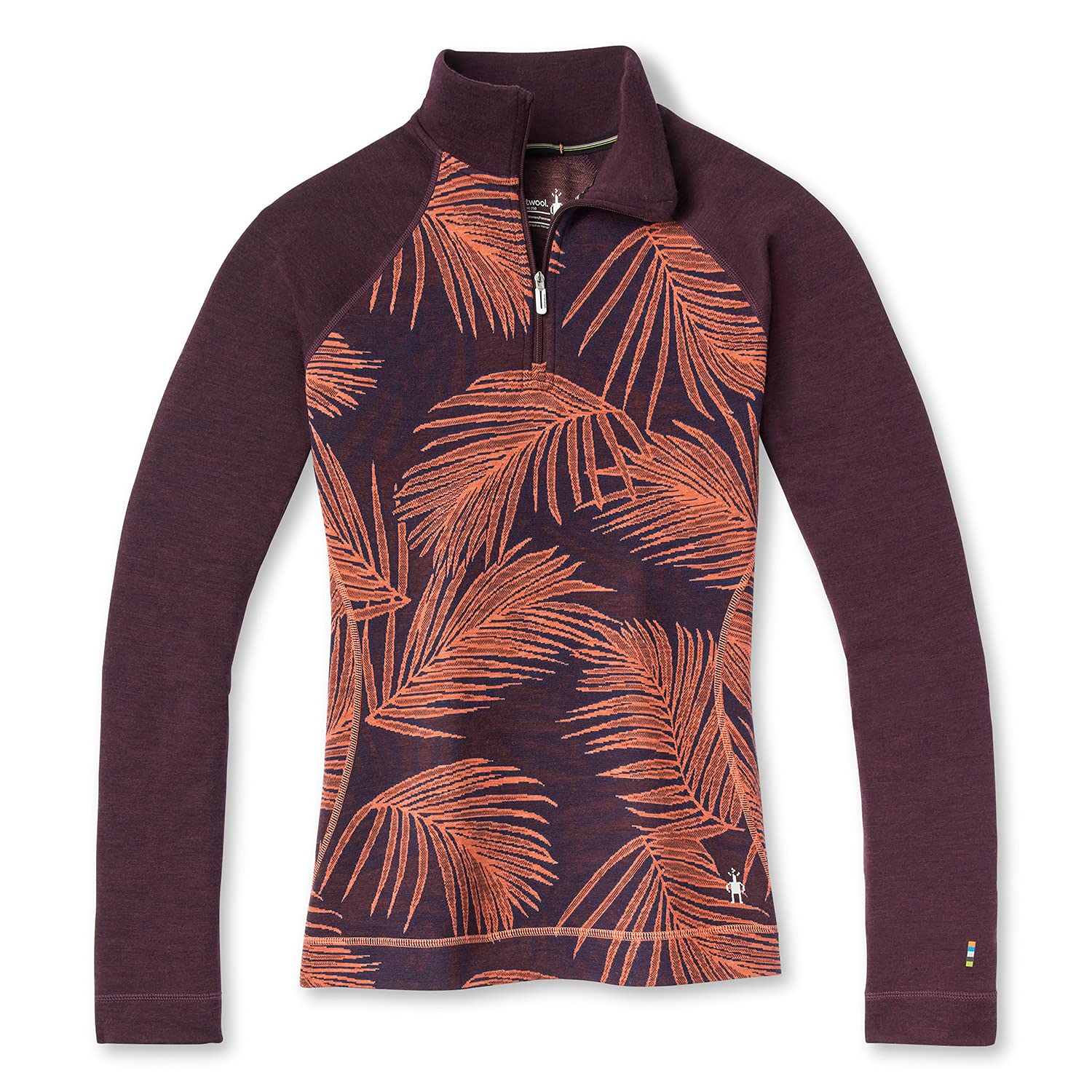 Smartwool Women's Merino 250 Pattern 1/4 Zip Long Sleeve Base Layer – Moisture-Wicking Merino Wool Top for Skiing, Hiking, Biking & Cold Weather Outdoor Activities - Sunset Coral Palm, M