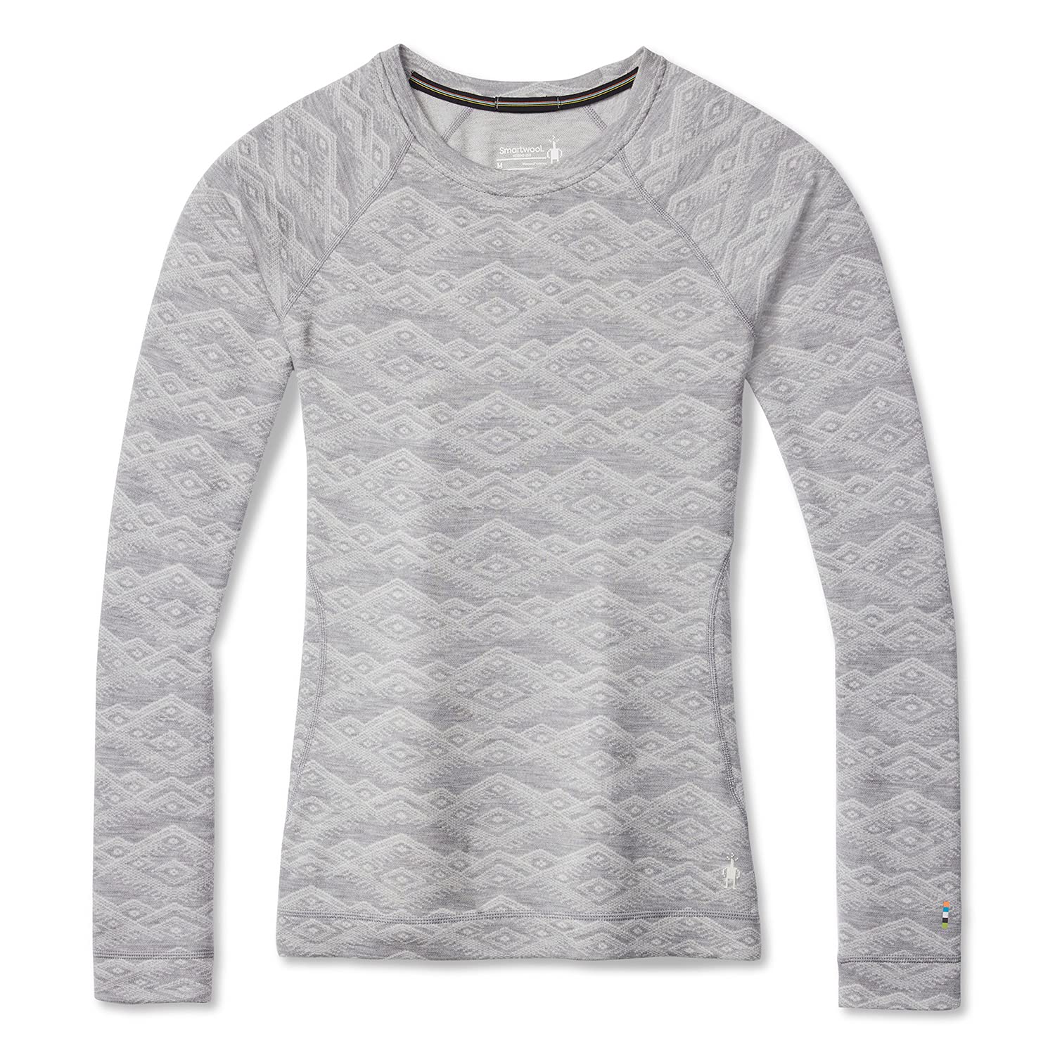 Smartwool Women's Merino 250 Pattern Crew Long Sleeve Base Layer – Moisture-Wicking Merino Wool Shirt for Skiing, Hiking, Biking & Cold Weather Outdoor Activities - Light Gray Mountain Fairisle, L
