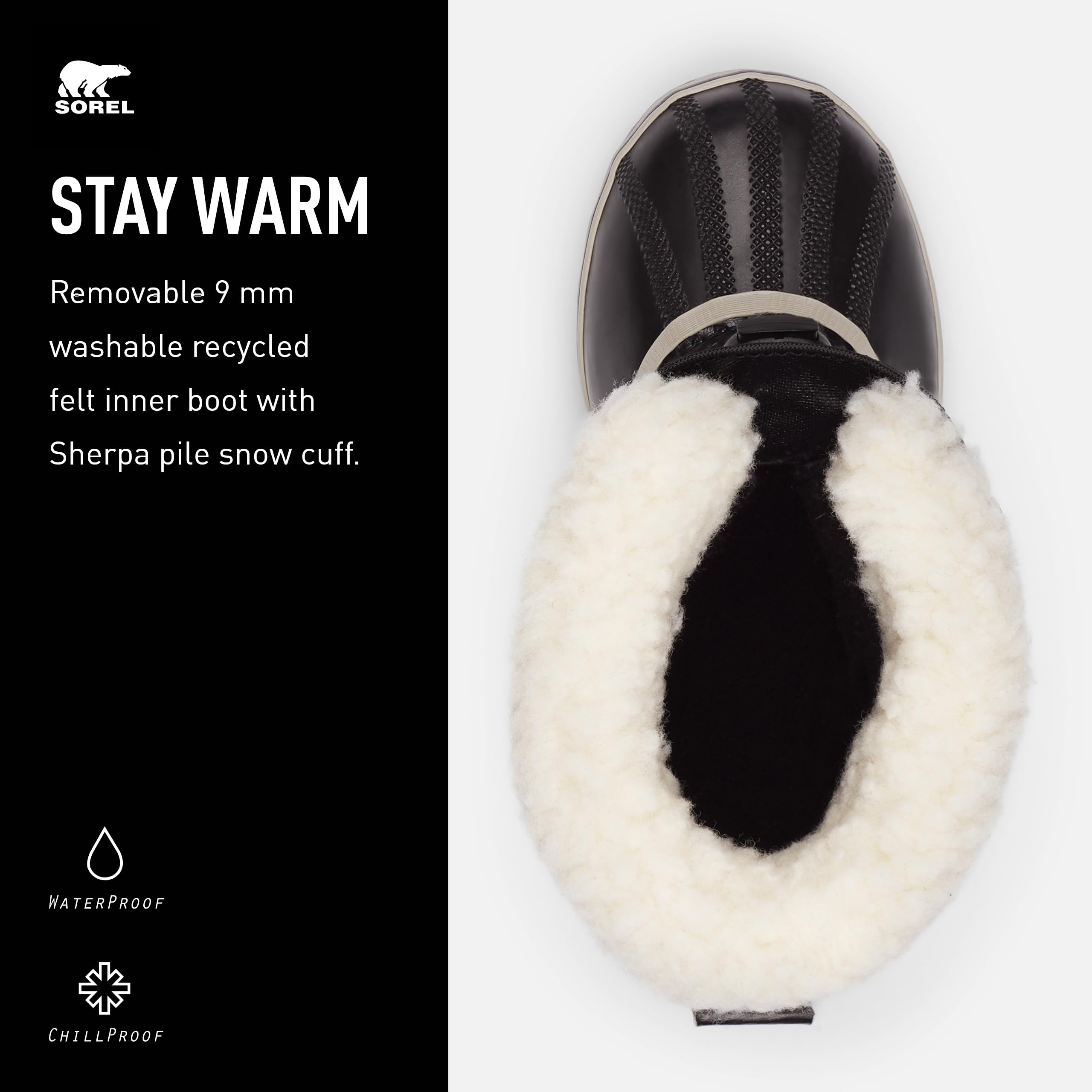 Whether you're making snowmen or sledding, these winter boots are warm, durable and comfortable thanks to their simple, versatile design. They have a waterproof nylon top, removable felt lining and a Sherpa-style anti-snow upper.