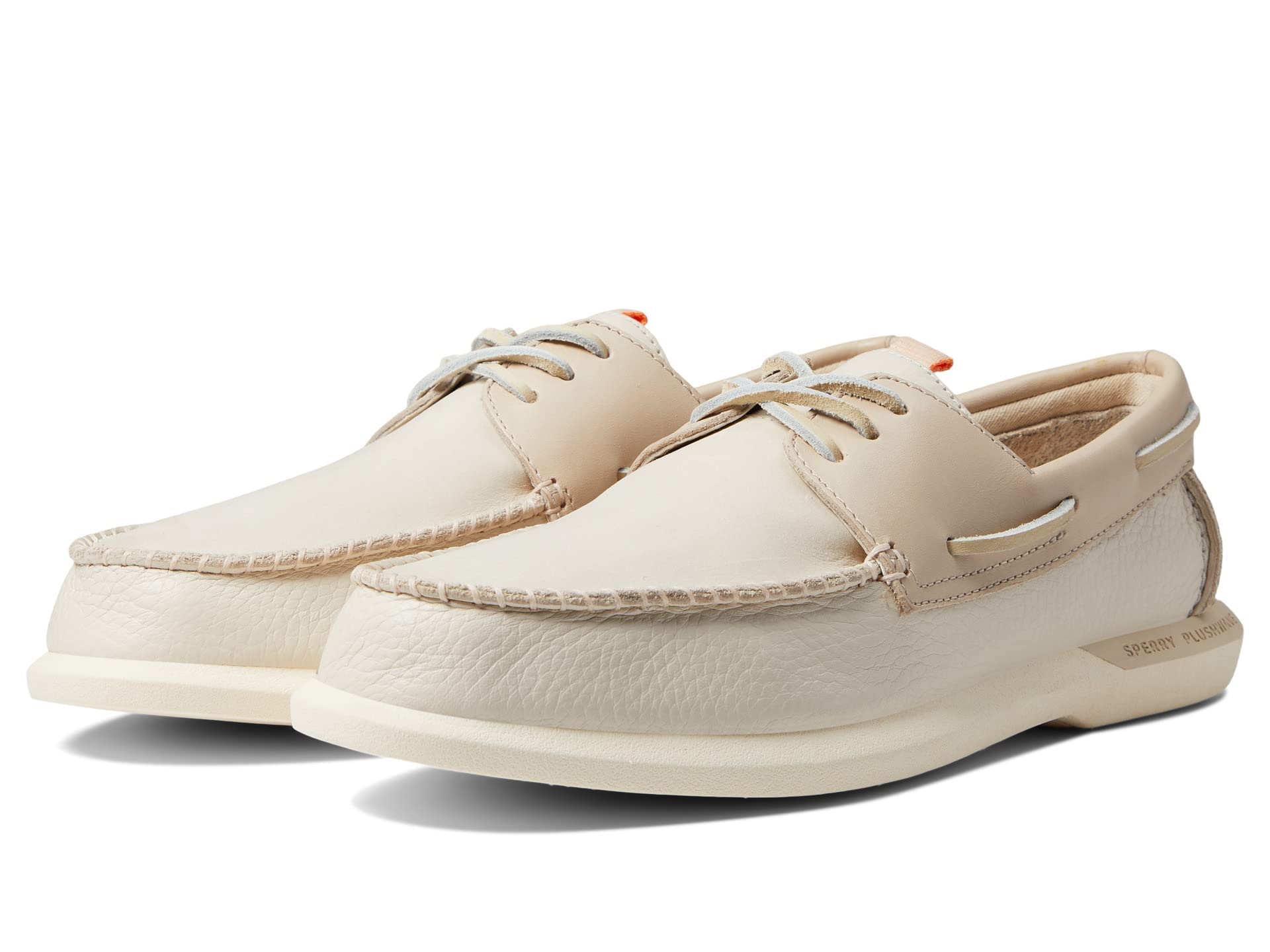 Details: Men's Sperry, Authentic Plushwave 2.0 Boat Shoe. This update to the classic Authentic is 40 percent lighter and all around softer. PLUSHWAVE technology takes comfort to a whole new level with bouncy lightweight cushion. Full-grain leather uppers with handsewn moccasin construction Minimal 3-eye design features super soft laces that allow for a more secure tie 360 degree lacing system PLUSHWAVE technology and EVA footbed with RMAT compound for increased comfort under foot Shock-absorbing EVA heel cup Razor-Cut Wave-Siping outsole for excellent traction on wet or dry surfaces
