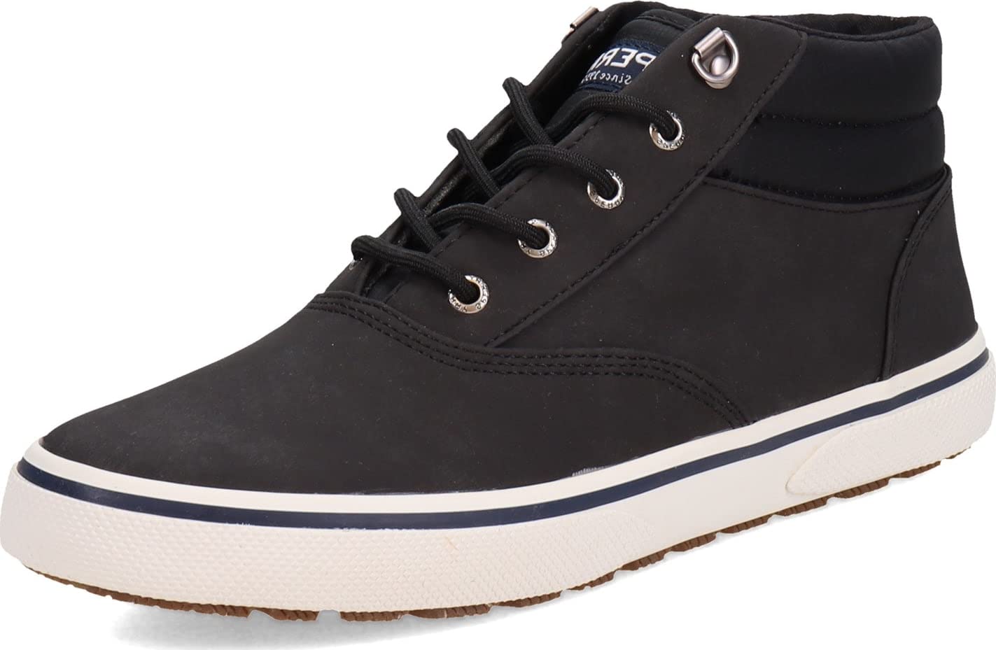 Details: Men's Sperry, Halyard Storm Chukka. Sperry Striper Storm Chukka boots are perfect for getting in and out the door on a rainy day. Waterproof leather and suede uppers keep feet dry, while non-marking diamond lug outsole with Razor-Cut Wave-Siping provides the ultimate no-slip traction. Waterproof leather and suede uppers Seam-sealed waterproof construction Lace up closure for a secure fit Fabric lining and padded collar for added comfort Soft cushion footbed Non-marking diamond lug outsole with Razor-Cut Wave-Siping