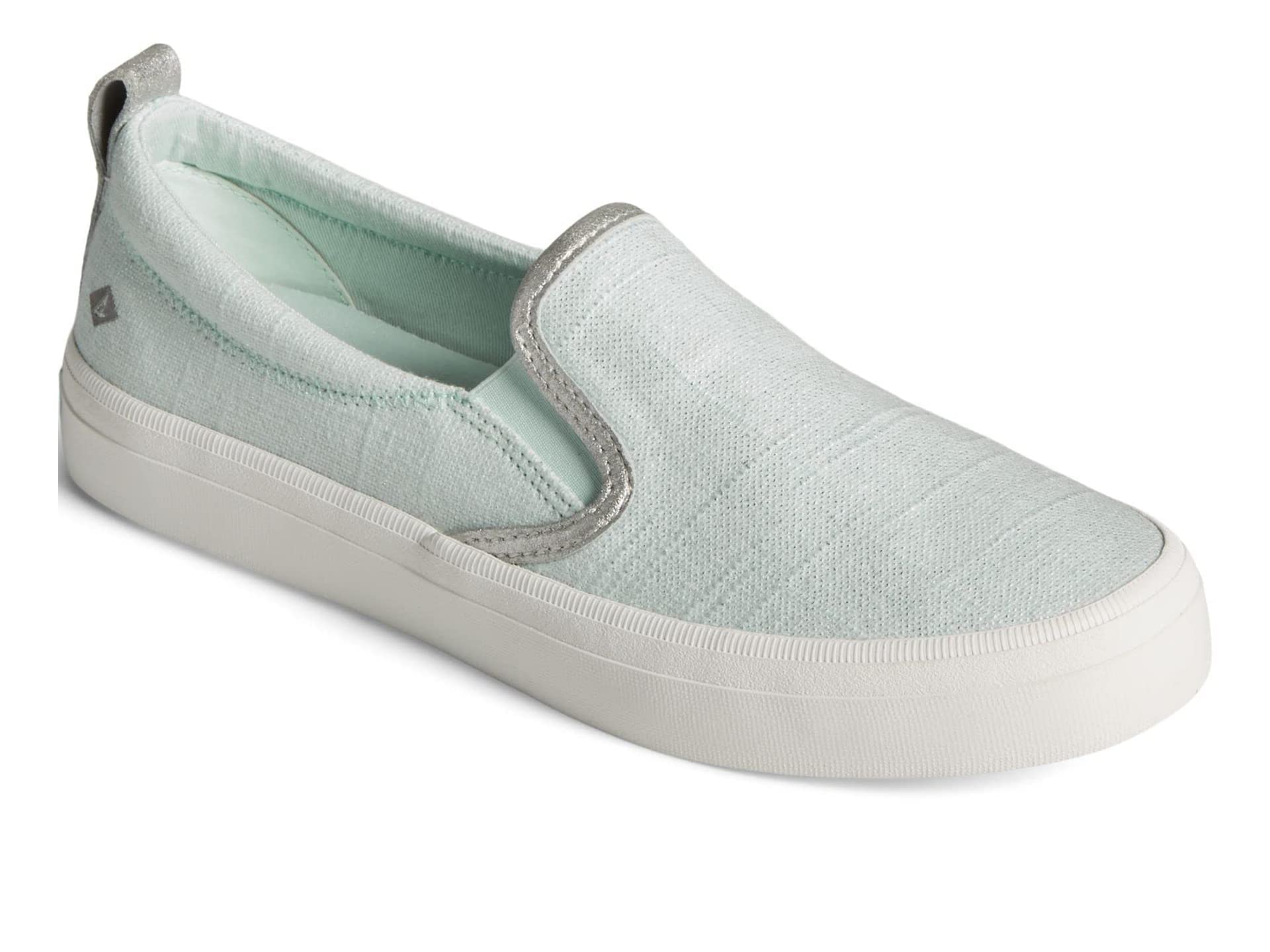 - An easy, no fuss and fashionable slip-on sneaker perfect for a wide range of wearing occasions, done in tonal pastels Soft textile uppers in seasonal shimmering textile, a double-gore design for easy on, easy off Memory Foam cushioned insole provides all-day comfort with a flexible non-marking rubber outsole for traction
