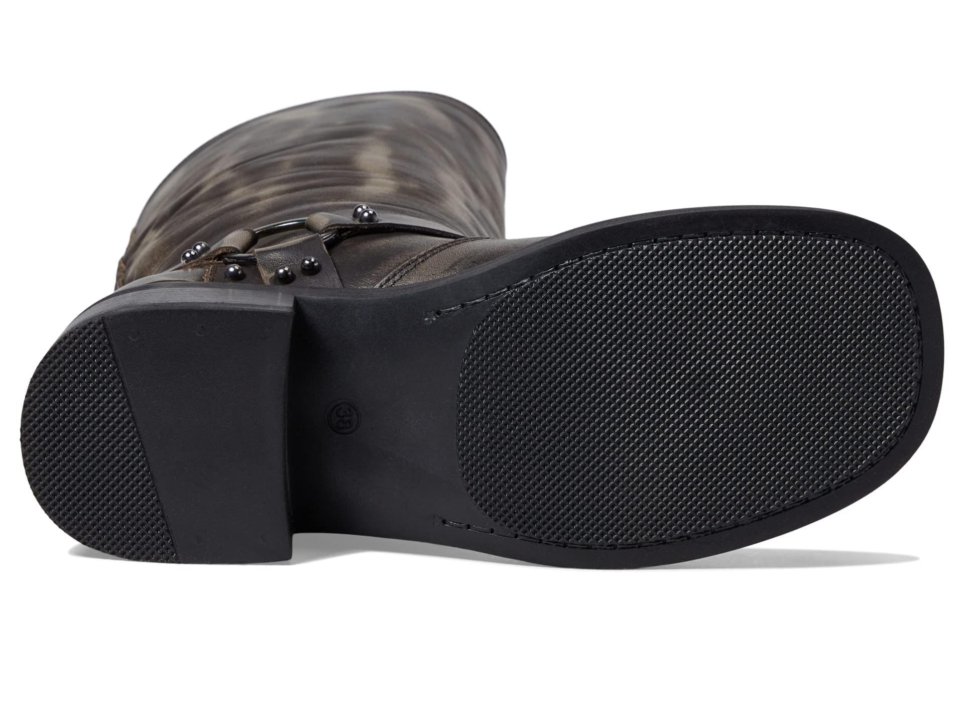 Add an edge to your style with these moto-inspired Steve Madden Rocky Boot made from a soft leather upper. Leather upper. Textile lining. Synthetic footbed. Side buckle closure. Knee-length boots. Slight block heels. Raised round toe silhouette. Synthetic midsole and outsole. Imported.