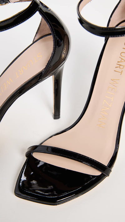 Stuart Weitzman Women's Nudist Curve 100 Patent Sandals, Black, 7 Medium US