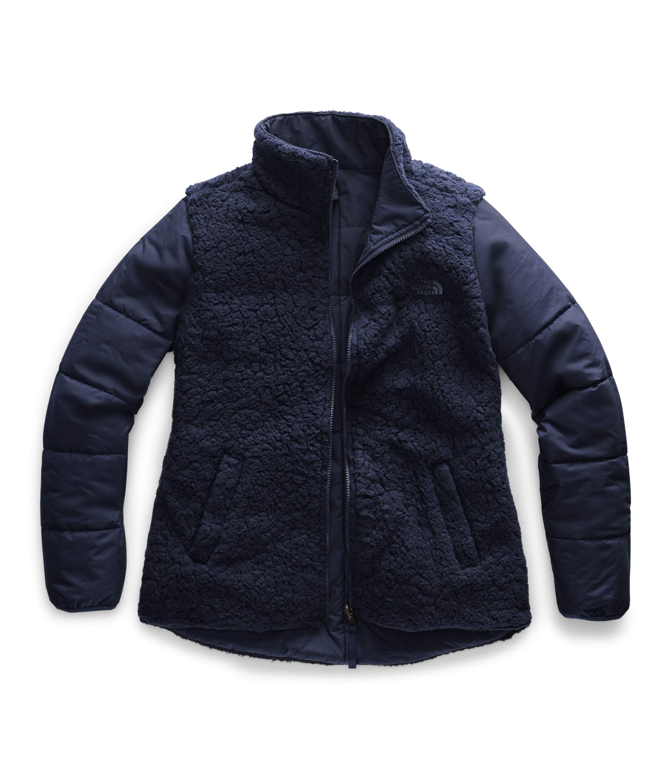 - Has a recycled woven outer shell that reverses to a Sherpa fleece body with recycled woven sleevesEmbroidered logo on left chest on woven side and flag label on fleece side