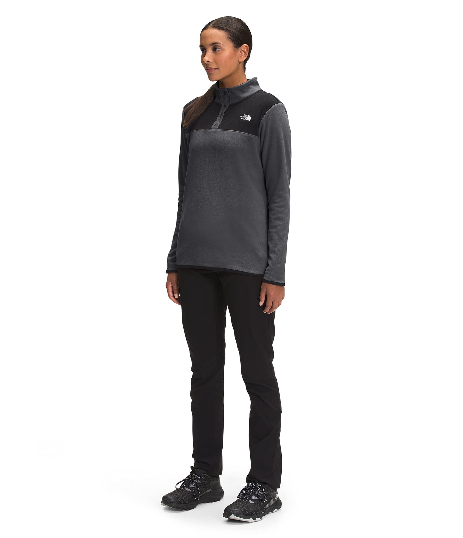 THE NORTH FACE Women's TKA Glacier Snap-Neck Pullover Sweatshirt, Asphalt Grey/TNF Black, X-Large