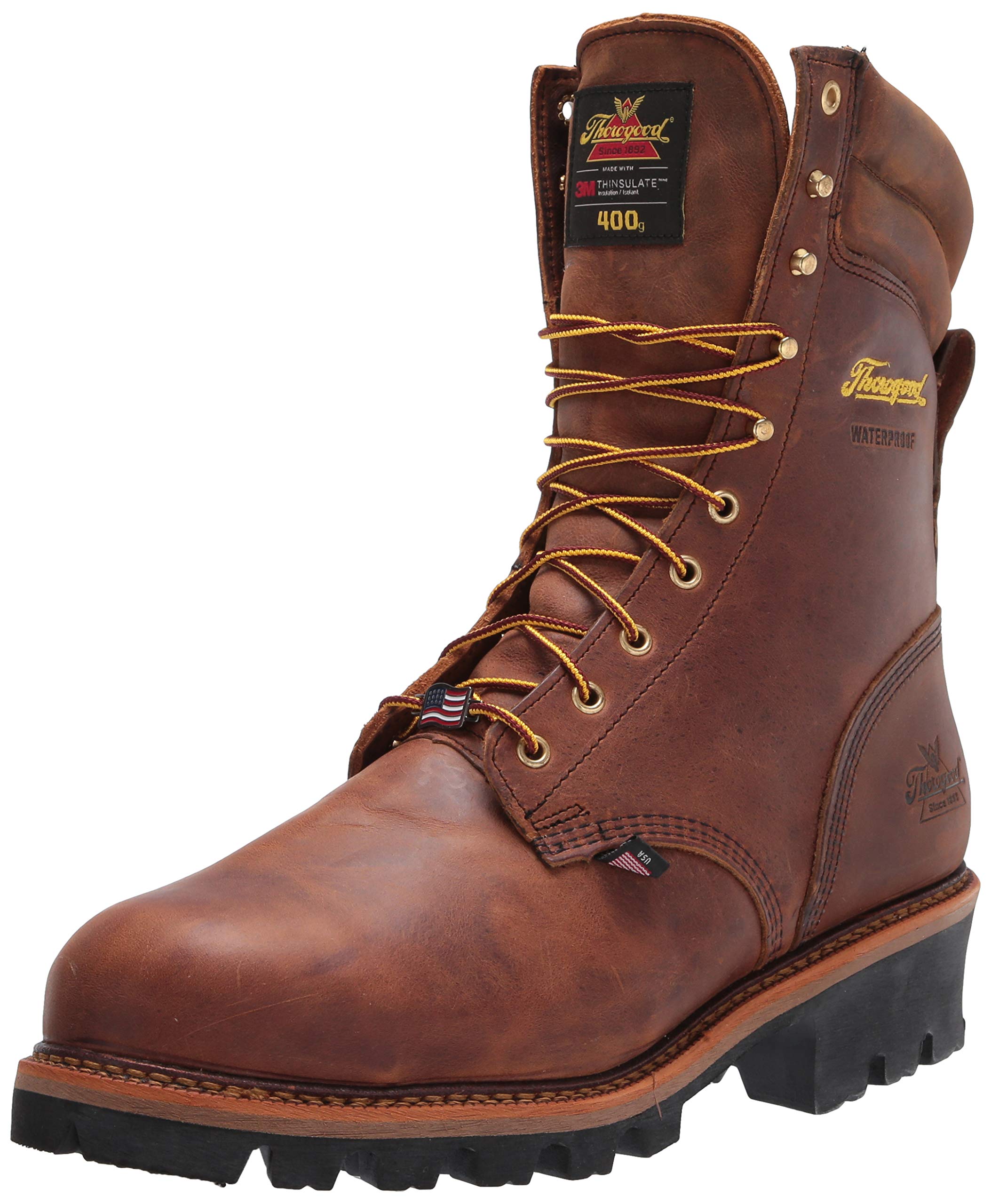 Thorogood Logger Series 9” Waterproof Insulated Steel Toe Work Boots for Men - Premium Leather with 400g Thinsulate and Vibram Slip-Resistant Heel Outsole, Trail Crazyhorse - 9.5 M US