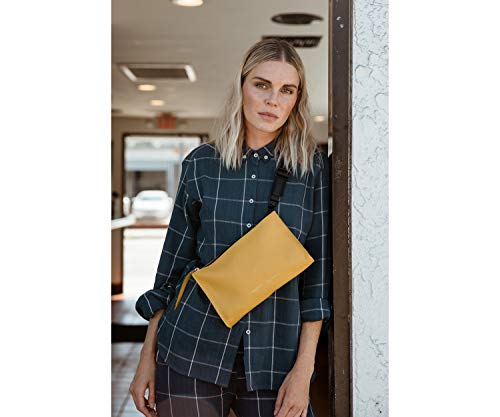 - CLEVER EXTRAS & MATERIALS: All leather pouch with highly durable seat belt webbing strap; Main body material is Pampas Leather; Convertible carry as a clutch or crossbody bag