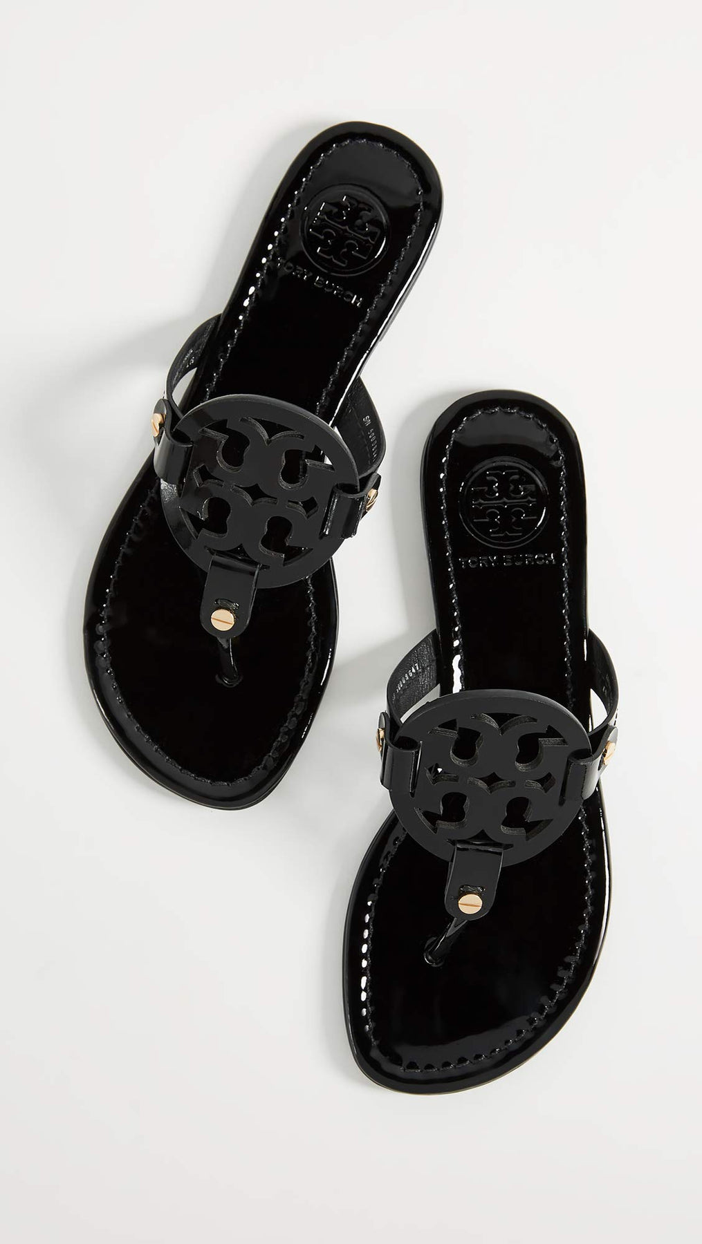 Tory Burch Women's Miller Patent Thong Sandal, Black, 10.5 Medium US