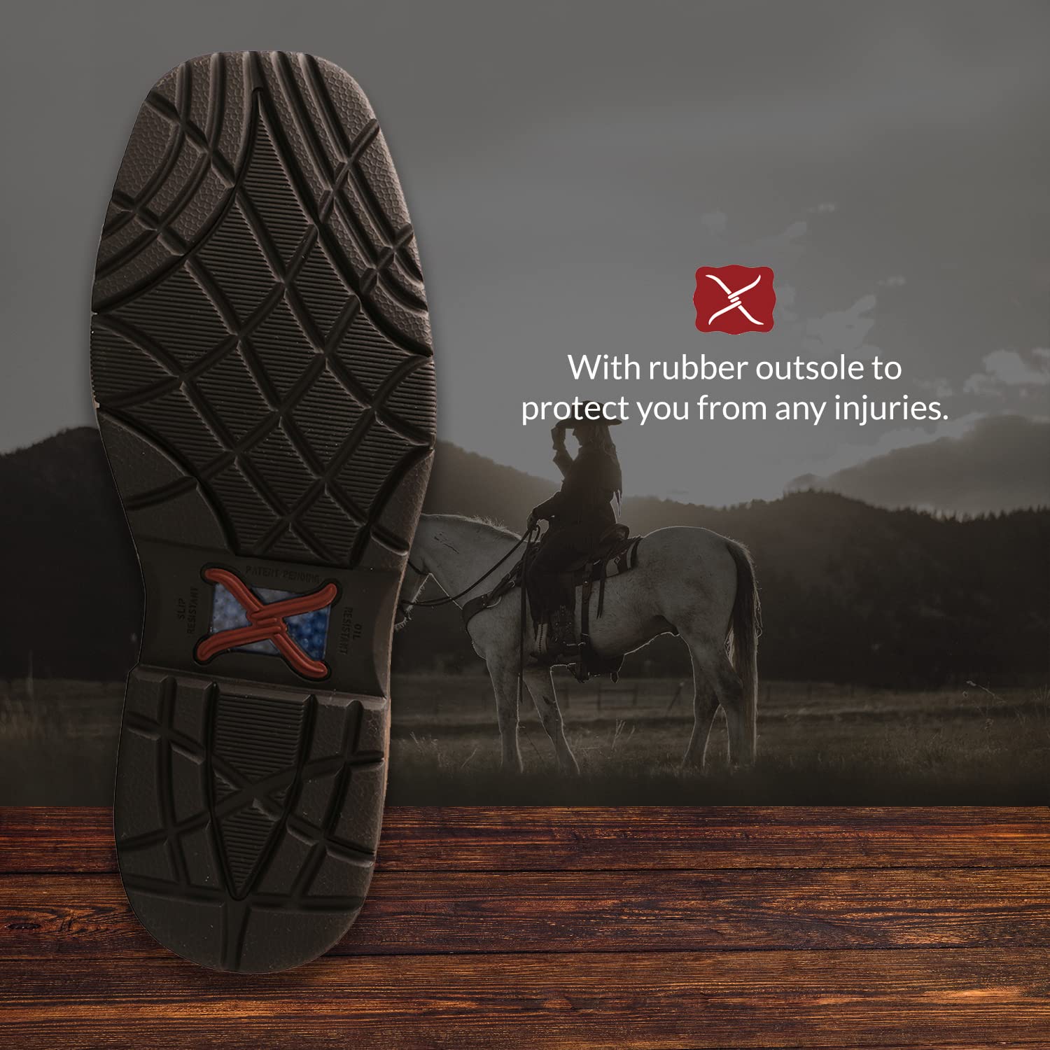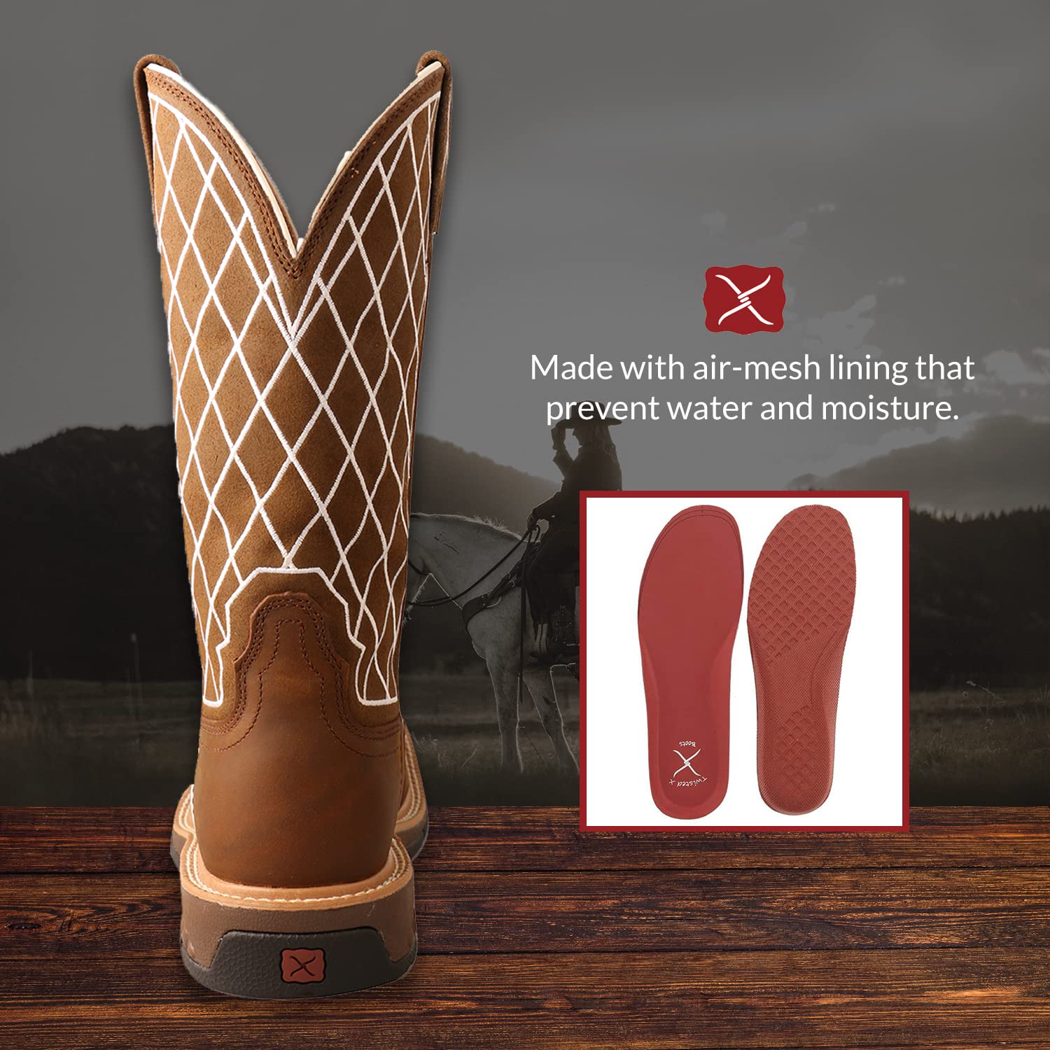 TWISTED X WOMEN'S STEEL TOE LITE WESTERN WORK BOOT This Women's 11" Steel Toe Lite Western Work Boot is handcrafted in traditional western boot profiles with signature full-grain leathers for a classic look On the inside they utilize air-mesh lining taped seams and a Twisted X SD footbed for additional comfort These comfort features are paired with a double-stitched storm welt full-length composite XSD insole a lightweight full-length compression-molded EVA midsole and an oil/slip-resistant molded-rubber outsole to produce an industry leading work boot Twisted X Western Work Boots provide all the comfort and durability that you need to outperform any demanding work environment Specs GENDER Women's OUTSOLE COMPOSITION Molded Rubber PRODUCT CATEGORY Boot Safety Toe PRODUCT GROUP Work TOE SHAPE NWS Toe Cowboy Work The Twisted X Cowboy Work collection is exactly what it says Durable heavy duty workboot with a cowboy profile The slab rubber outsole is extremely durable and slip resistant while the Twisted X patented XSD insole provides stability and an excellent fit The moisture-wicking and machine-washable removable footbed s comfort for a long day on the job