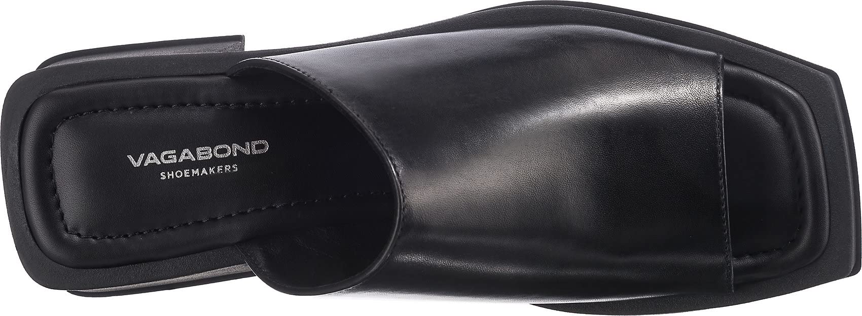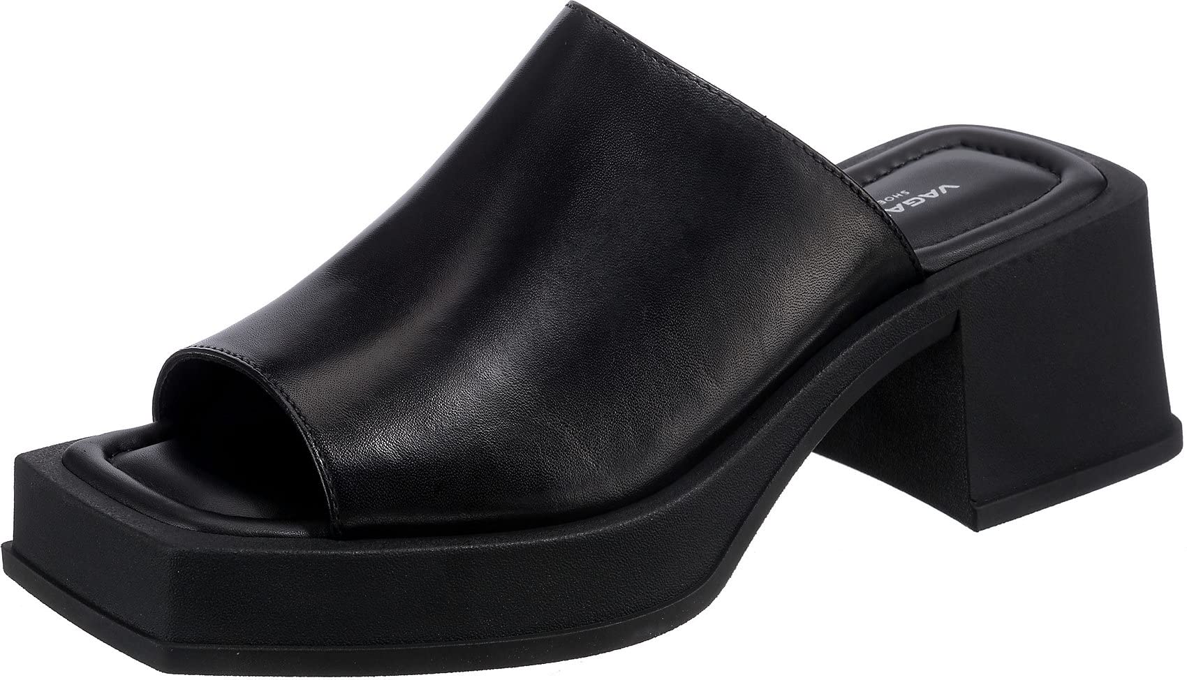 Look bold and chic wearing the Vagabond Shoemakers Hennie heels that feature an angled design. Leather upper, lining, and insole. Slide-on style. Open square toe. Low angled block heel. Broad vamp strap. Rubber outsole.