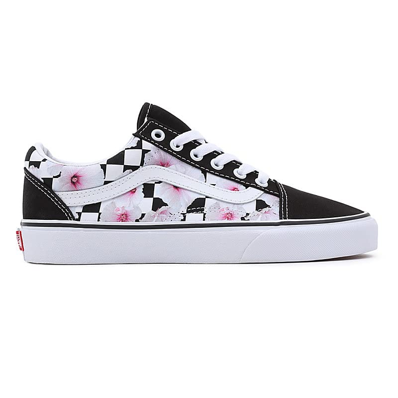 Vans Men's Old Skool Sneaker, (Hibiscus Check) Black, Size 7, 8.5 Women/7 Men